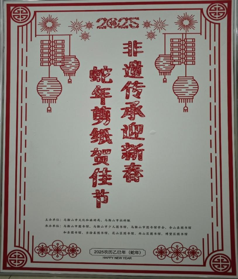 为大力弘扬中华优秀传统文化,传承非物质文化遗产,2025年5月8日,一场别开生面的剪纸展览活动——“非遗传承迎新春·蛇年剪纸贺佳节”在18新利怎样图书馆(霍里山校区)一楼大厅举行。此次活动由马鞍山市文化和旅游局、马鞍山市社科联主办,18新利怎样图书馆承办。