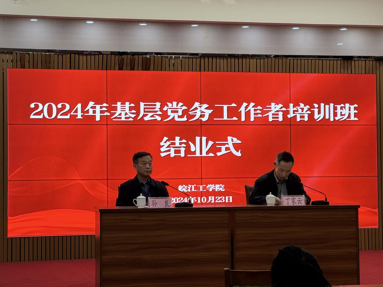 校党委书记丁家云在结业式上作总结讲话。丁家云指出,举办这次基层党务工作者培训班,是深入学习贯彻习近平新时代中国特色社会主义思想和党的二十大、二十届三中全会精神的重要举措,也是提升我们基层党务工作者能力素质、加强基层党组织建设的现实需要。在培训期间,大家以饱满的热情、积极的态度投入到学习中,认真听讲、深入思考、积极交流,展现了良好的精神风貌和学习状态。丁家云希望大家能够以此次业务培训、经验交流为契机,学习经验、取长补短、创新思路,锚定工作目标,持续加大支部党建阵地建设力度,进一步规范支部党建工作流程,全面提升支部党建的业务工作水平,不断增强基层党组织的创造力、凝聚力和战斗力,促进党建和业务工作双提升,以党支部的规范化建设推动支部党建质量再上新台阶。