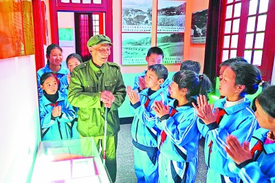 老战士在江西省德兴市龙头山革命烈士纪念馆给学生讲解。新华社发