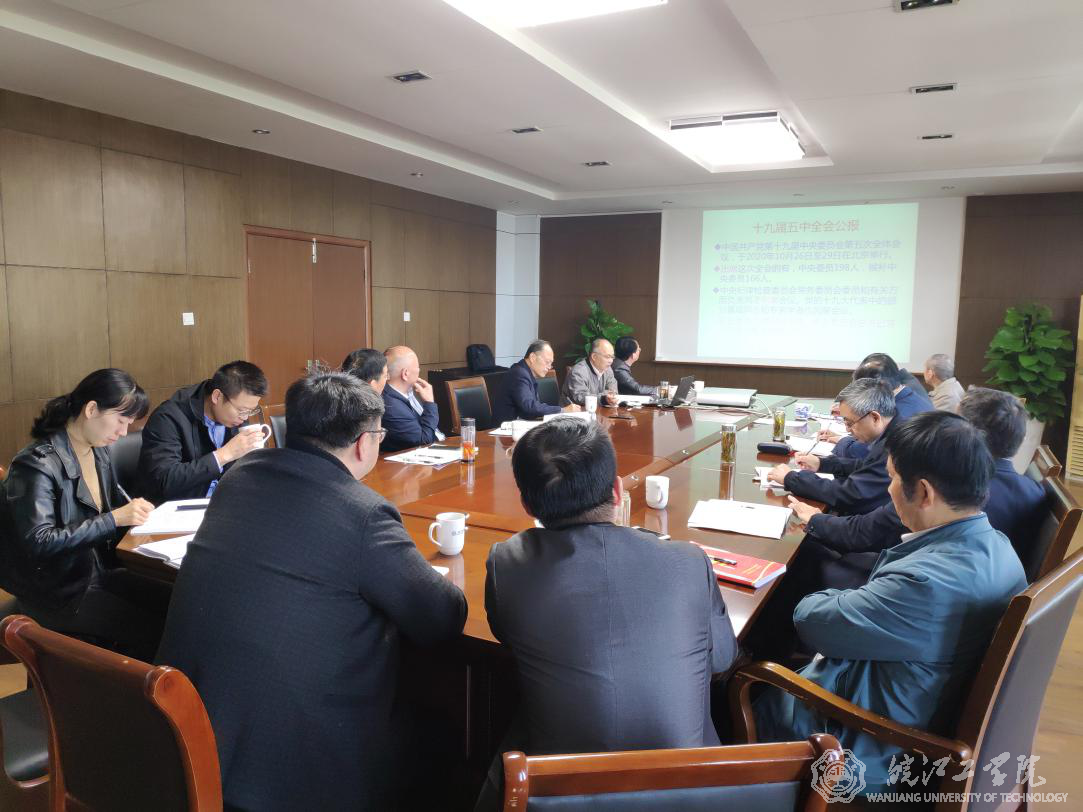 11月5日,我校在行政楼F404召开党委中心组(扩大)学习会。省督导专员、党委书记刘志祥,党委副书记、校长吴继敏,党委副书记、纪委书记张勤,副校长汪光阳、张建民、阮怀宁、侯进元出席会议,党委委员、纪委委员、各总支书记、副书记、各部门负责人参加会议,会议由刘志祥主持。