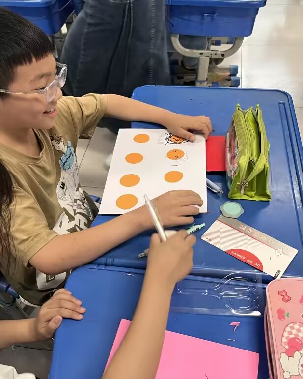 中华优秀传统文化源远流长、博大精深,非遗文化中的剪纸艺术作为中华优秀传统文化的精华部分和重要载体,是进行美育的重要抓手。活动首日,实践团队便开展了活动内容的第一项——有趣的剪纸课。团队成员首先进行了剪纸艺术相关理论知识的传授。“纸上得来终觉浅,绝知此事要躬行”,团队成员在理论知识讲解完毕后,便让孩子们发挥所想,剪出自己理想的图案。生动、有趣的课堂内容使得三年级的孩子们,充分领略到了非遗文化剪纸的独特魅力,并且掌握了基本的剪纸技法。为鼓励大家的积极性和对美术的喜爱,课堂上团队成员还举行了趣味签到和奖品鼓励等活动。