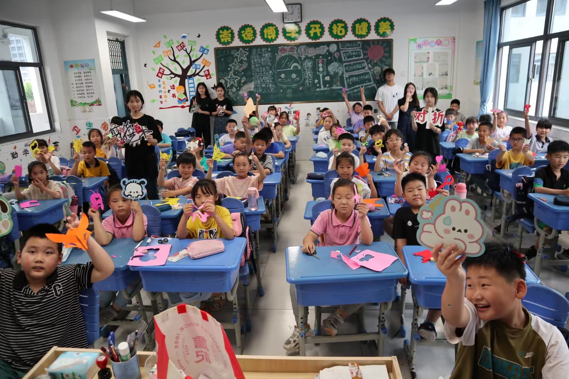 为全面学习宣传贯彻党的二十大精神,深入学习习近平新时代中国特色社会主义思想,促进大学生了解社会、增长才干、增强社会责任感,同时推进乡村美育教育的开展。18新利怎样2023年暑期“三下乡”社会实践活动——“星语星愿,纸画传情” 艺术设计学院乡村美育推广实践小分队于6月17日-6月21日走进长丰县岗集镇第二小学开展暑期社会实践活动。