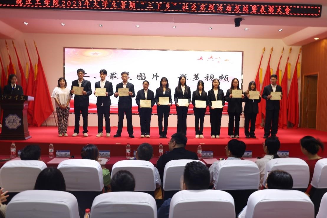 随着激昂的颁奖乐响起,与会领导依次为此次暑期“三下乡”社会实践获最美日记、最美图片与最美视频、先进个人、优秀调研报告、优秀团队、优秀指导教师代表以及优秀组织奖单位颁奖。