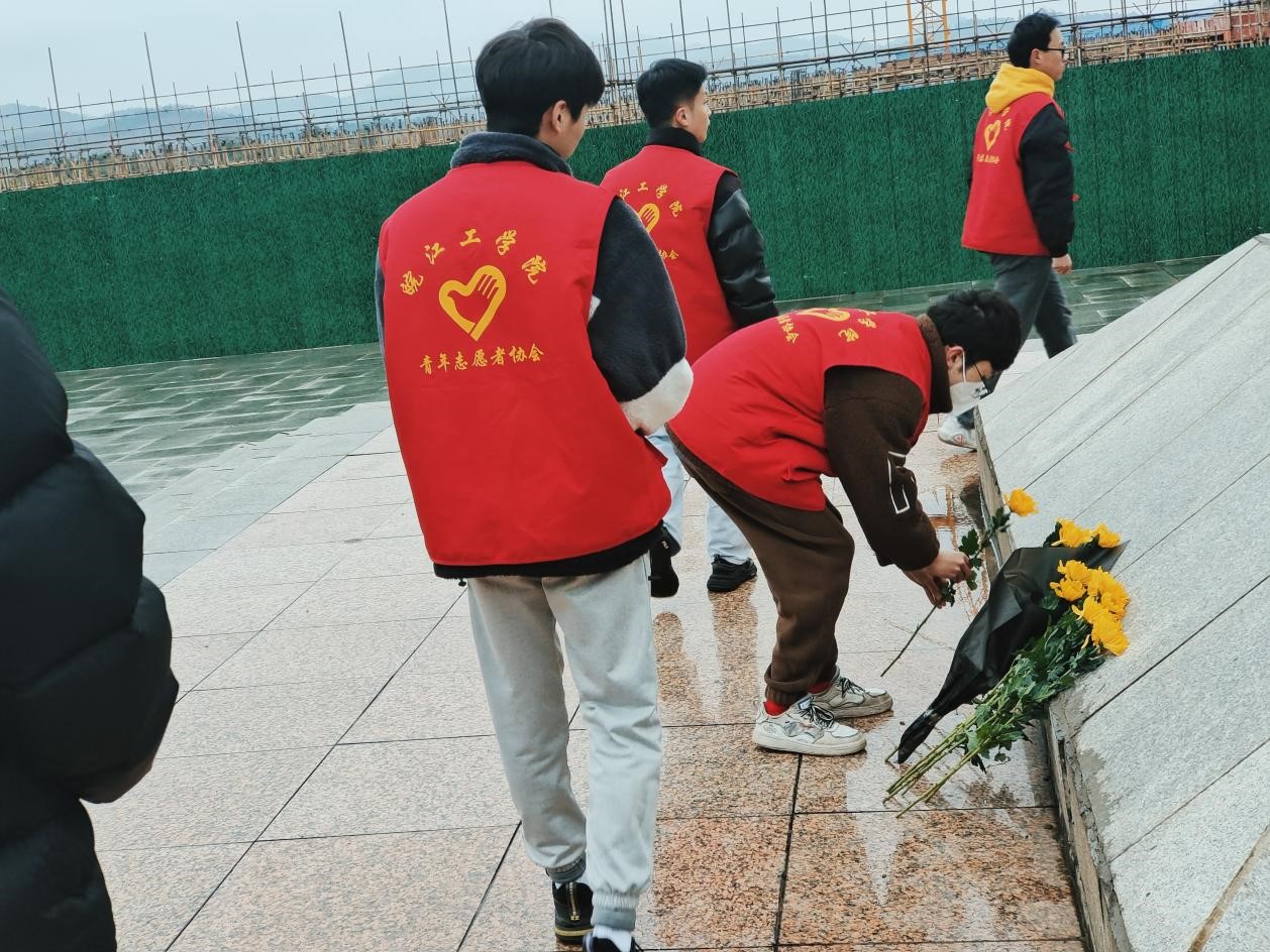 昭昭前事惕惕后人,缅怀先烈吾辈当自强。2023年12月13日是第10个南京大屠杀死难者国家公祭日,为缅怀革命先烈,弘扬优良革命传统和爱国主义精神,我校青年志愿者协会师生们联合团花山区委走进濮塘烈士陵园举行国家公祭日悼念仪式。