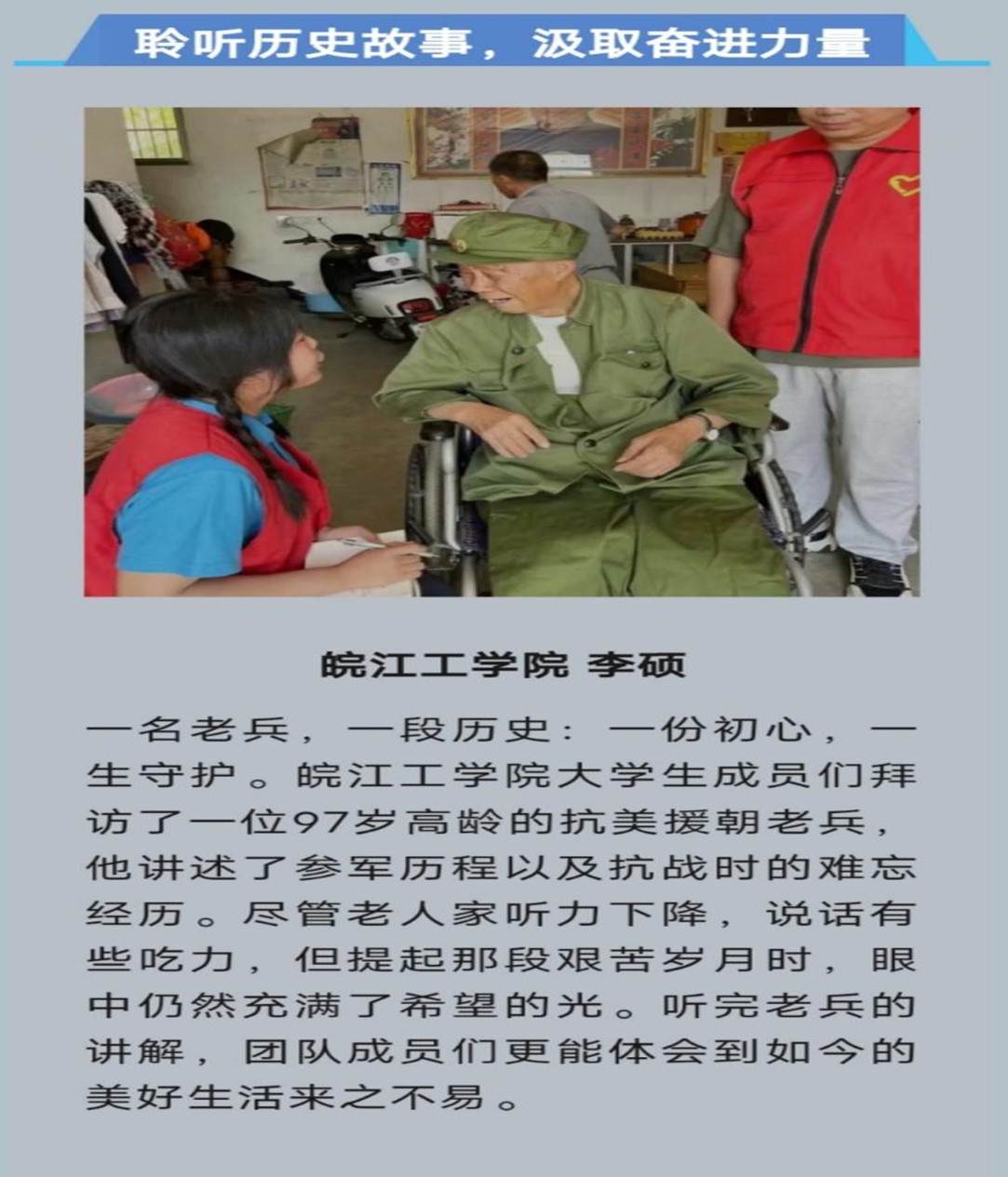 为展示志愿服务文明新元素,涵养向上向善的志愿服务新风尚,传递助老志愿服务活动好声音、好形象,在“中银公益互助养老平台”、“中国大学生知行促进计划”主办的“青老同心 伴老同行”图片征集活动中,我校青年志愿者协会投稿的摄影作品“聆听历史故事 汲取奋进力量”荣获全国一等奖。