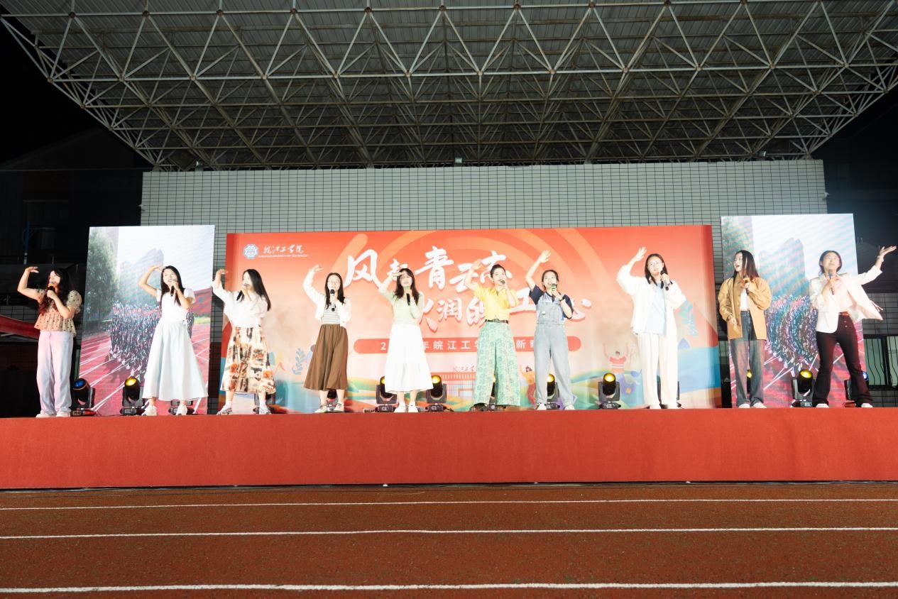 晚18:30时整,伴随着铿锵有力、气势磅礴的乐声响起,晚会在民乐、舞蹈《飞舞千年》中拉开帷幕。晚会分“遇见青春”、“梦想启航”两个篇章,涵盖歌曲、舞蹈、汉服走秀、合唱、乐器演奏等多元表演形式。全体演出人员共同表达赤诚爱国爱校情怀,他们以精湛的艺术演出,为新生树立了自立自强、实干笃行的典范,燃动了每一名在场观众的心。合唱《逆光》犹如一股春风,吹拂着每一位新利体育手机端官网登录入口学子的心田,激发起他们为实现梦想而奋斗的勇气。激情四溢的新生辅导员歌唱节目《new boy》传递出新利体育手机端官网登录入口师生与时代同频共振的担当精神。倾情演唱的歌曲《默》、《我好像在哪见过你》、《第一天》震撼全场,演绎出青年学子的意气轩昂,诠释出青春的别样定义。舞蹈《Klaxon》、《armageddon》引燃全场,展现新时代青年的生机与活力。歌曲《学不会》的每一个音符都化作同学们心中的光芒,照亮逐梦路上的点滴希望。汉服走秀表演《水龙吟》将古典元素与现代舞姿完美结合,心中有丘壑,眉目作山河,诠释了华夏少年对祖国的深切热爱。三人唱歌表演《阿嫲》带领观众感受红军坚韧不拔的意志、永不磨灭的功绩,讲述了先辈们赤胆忠心、无私奉献的故事,激励新利体育手机端官网登录入口学子磨砺出挺膺担当的品质。