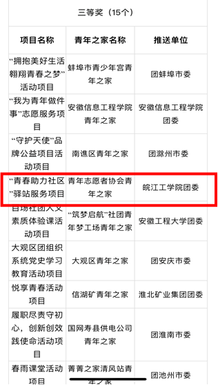喜报:我校荣获全省“青年之家”优秀项目三等奖 及“优秀组织奖”称号