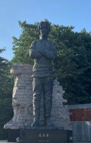 23日,团队出发前往马鞍山市和县参观“抗日女英雄成本华纪念广场”。1938年初日本侵略者侵入安徽省和县,和县人民奋起抵抗,成本华指挥战斗,最终被日本侵略军俘获,她英勇不屈,面朝太阳,双手交叉抱在胸前,轻蔑地微笑着,从容面对死亡。她那颗高昂着的中国人的头和对侵略者的轻蔑冷笑永远定格在一切爱好和平的人们心里。