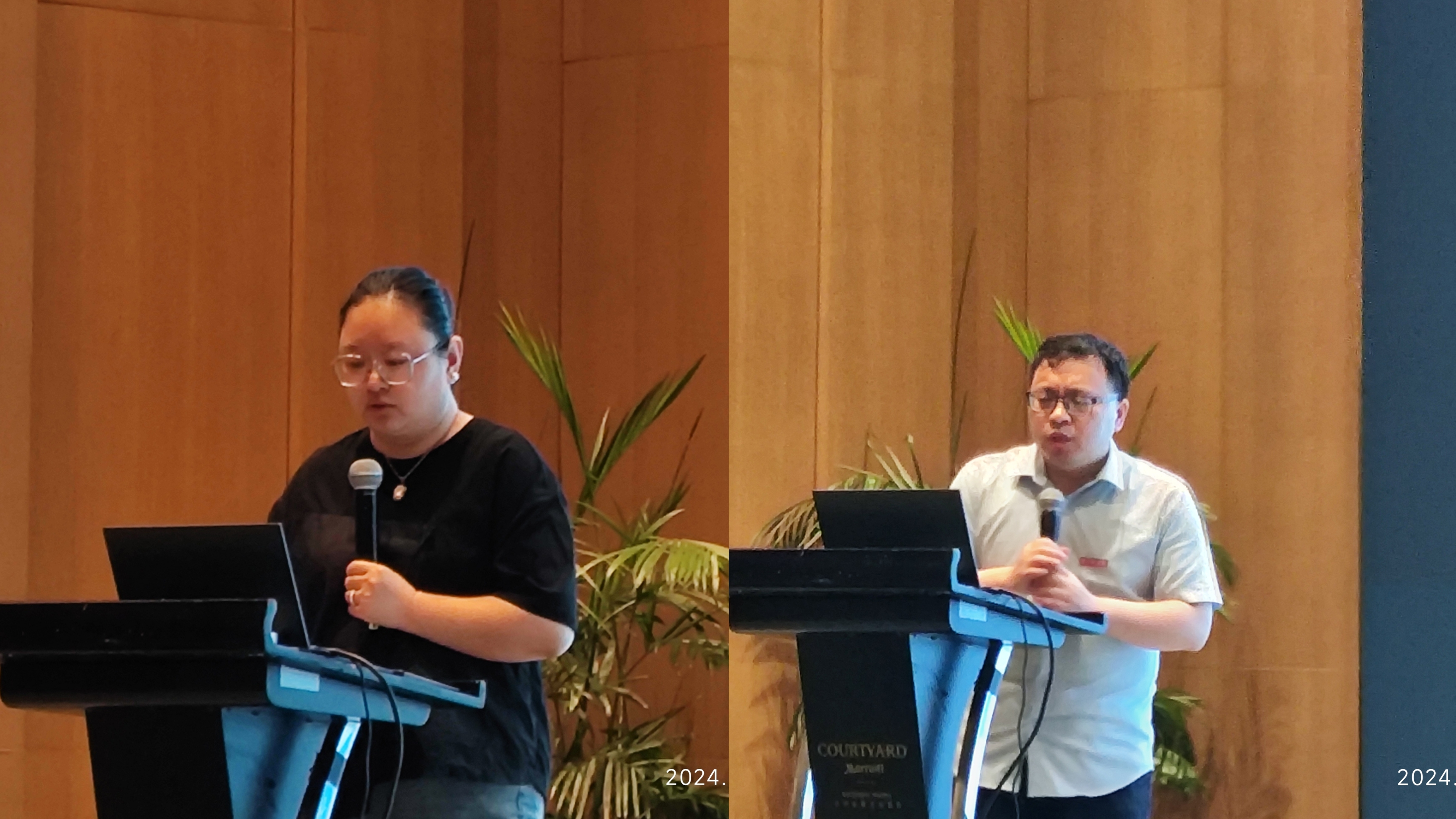 (图4 水利院院长助理田晓丹和基础部外语教研室主任彭饮冰作汇报)