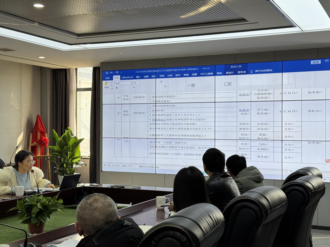 阮怀宁表示,各部门和学院要依据清单与任务安排,持续推进落实工作。合格评估工作至关重要,各学院院长必须亲自挂帅,组织团队分工协作,确保全员迅速进入工作状态。同时,要及时检查工作进展,加强督办,保障各项任务扎实落地。