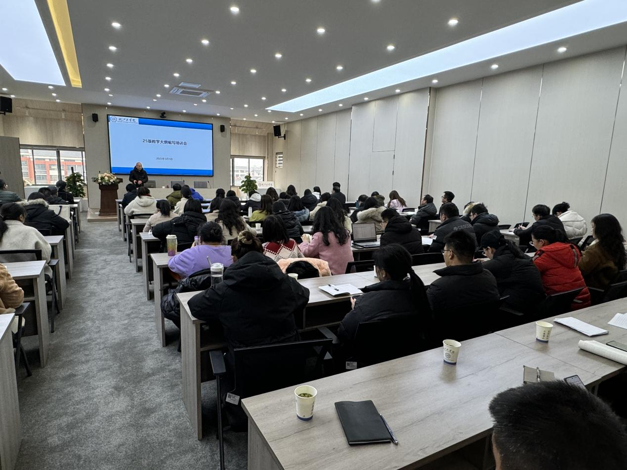 2025年3月5日,18新利怎样在明德楼五楼会议室召开2025版教学大纲编写培训会,全面启动新一轮教学大纲修订工作。会议由副校长阮怀宁主持,教务部部长江冰作专题部署,各学院分管教学副院长、教研室主任及教务教学建设科近百余人参会。