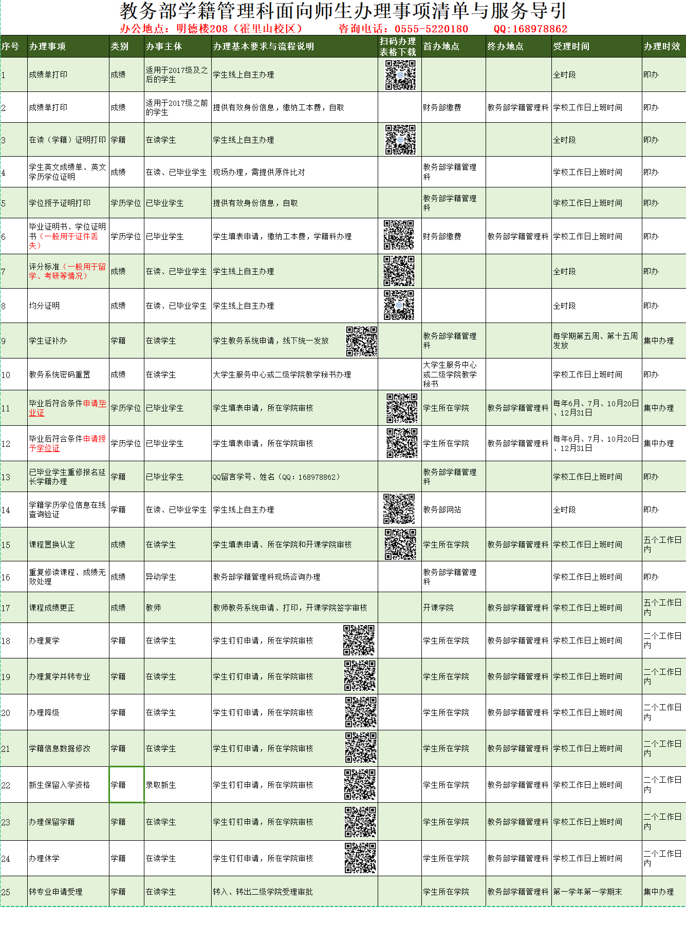 教务部学籍管理科面向师生办理事项清单与服务导引