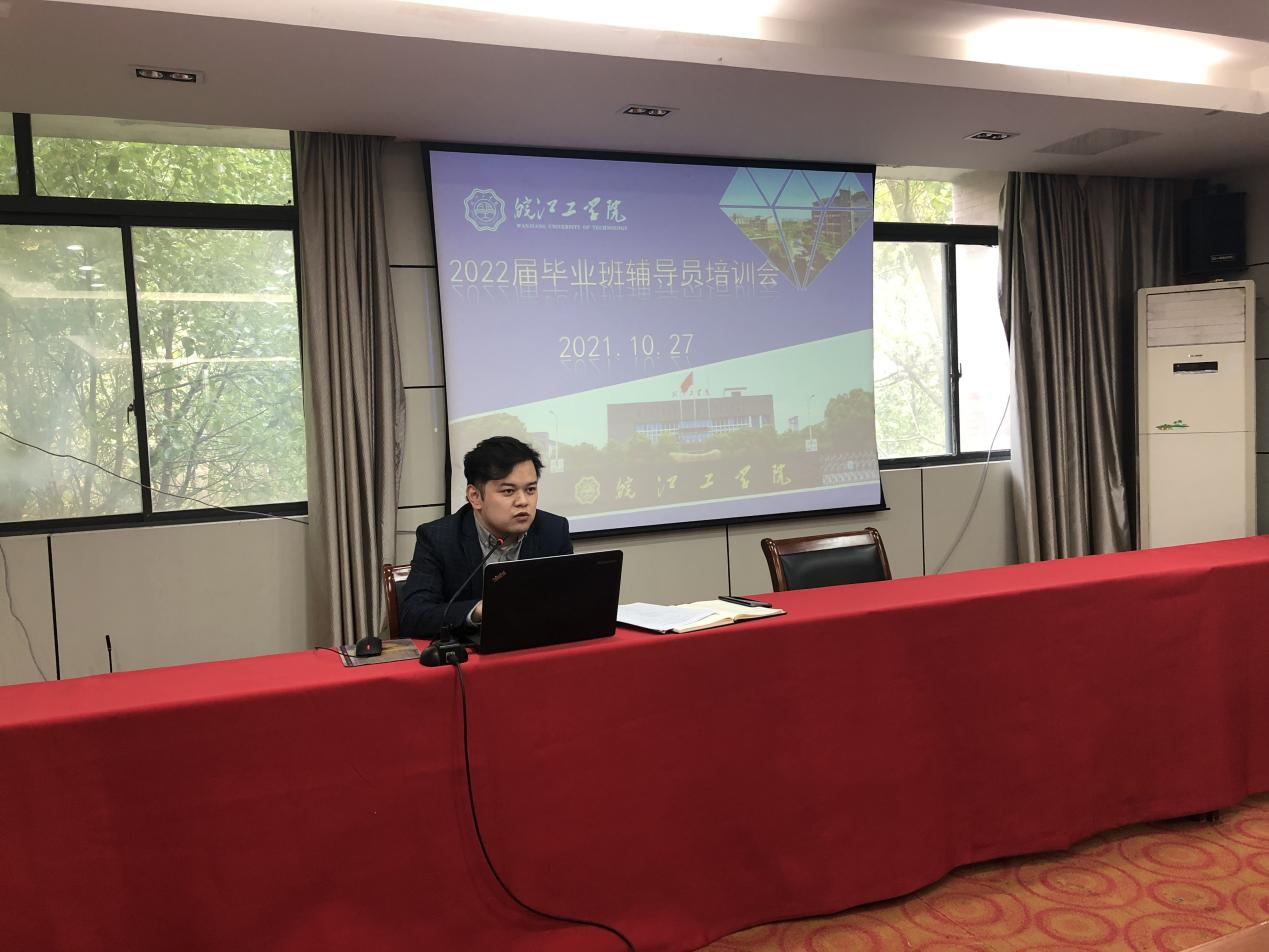 10月27日下午,我校在行政楼317会议室举办2022届毕业班辅导员培训会。就业指导中心主任王志、就业科科长冯康、2022届毕业班辅导员等参加了此次培训会。会议由就业科科长冯康主持。