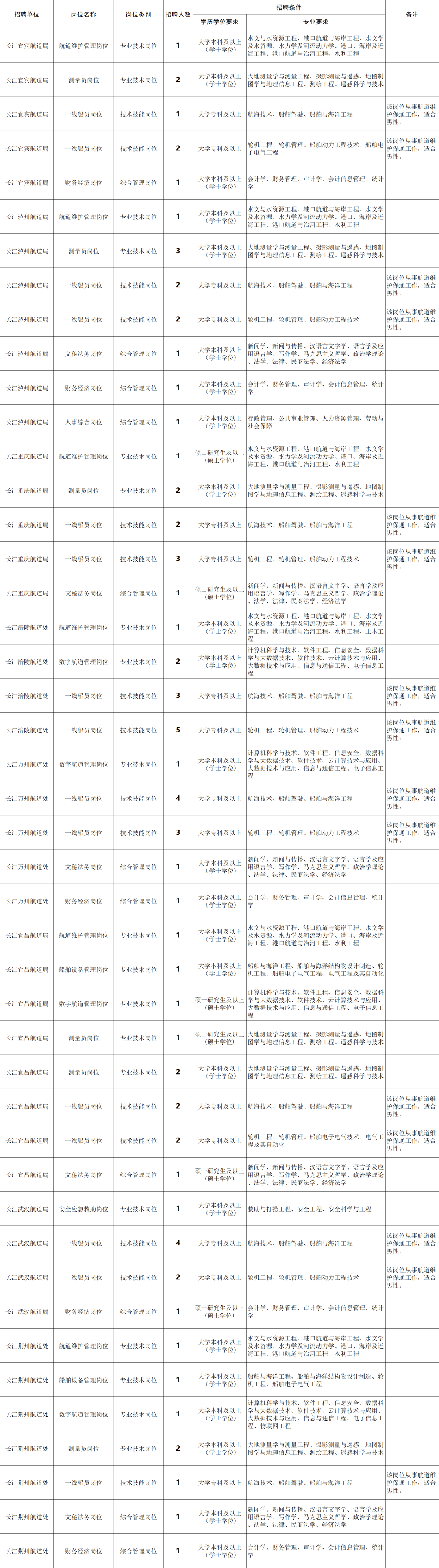 (三)本次招聘相关事宜由长江航道局负责解释。