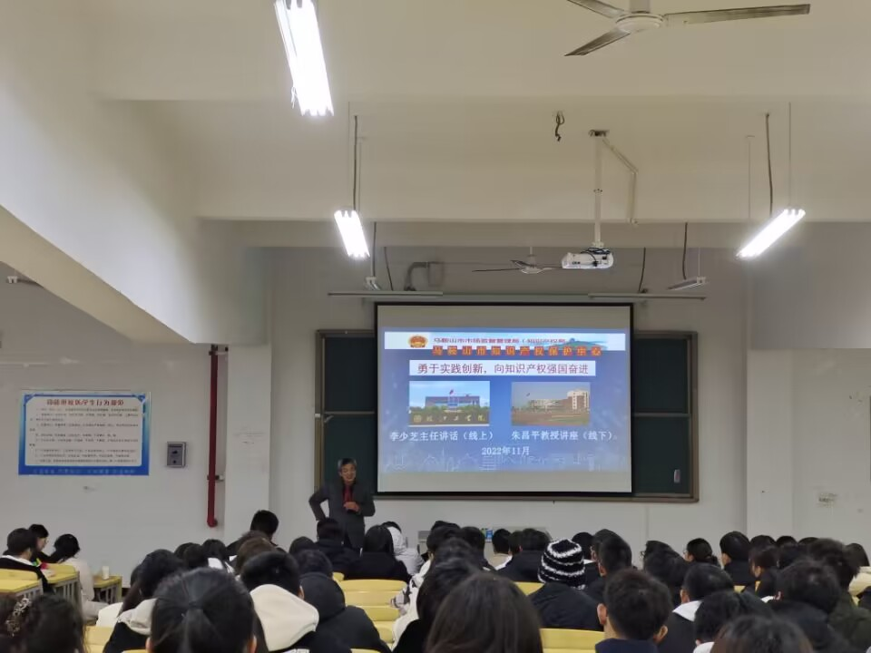 讲座开始,朱昌平教授从一流、二流、三流企业的划分引起了同学们对标准、专利的兴趣,并带入“勇于实践创新,向知识产权强国奋进”的讲座。他先向同学们讲解了《知识产权强国建设纲要(2021-2035年)》等战略目标的实施与大学生创新创业实践活动的内在联系,并详细介绍了TRIZ创新理论与应用知识。朱昌平教授通过2018年诺贝尔医学奖的国际案例,使同学们了解知识产权的重要性。通过我校学生已取得授权发明专利的案例,激起了同学们科技创新和申报专利的信心。