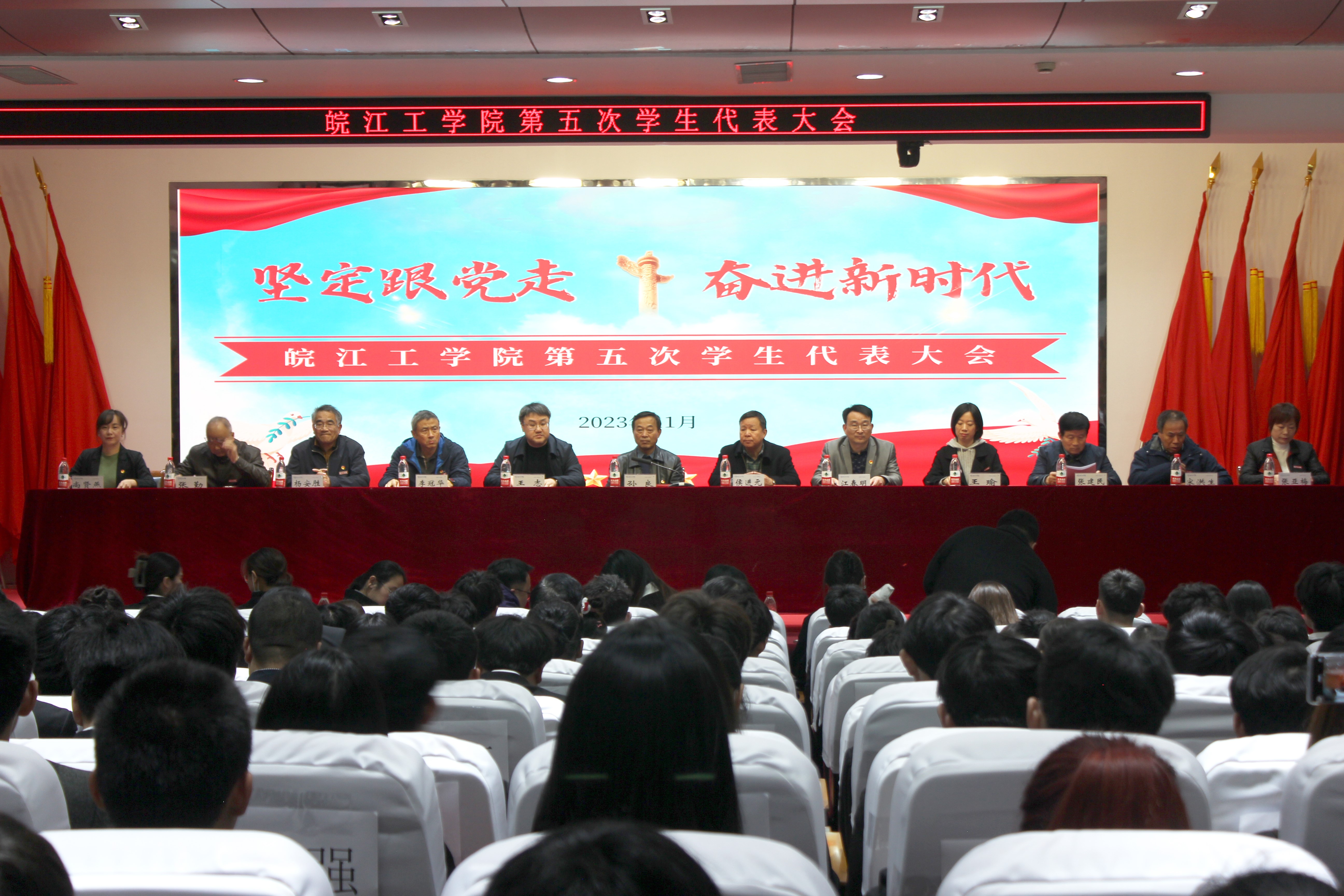 青春逢盛会,奋进正当时。2023年11月28日-29日,18新利怎样第五次学生代表大会在霍里山校区图书馆报告厅顺利召开。学校委副书记孙良,副校长侯进元,副校长王志,学生工作部常务副部长江春明,水利工程学院党总支书记李冠华,土木工程学院党总支书记王瑜,电气信息工程学院党总支书记杨安胜,机械工程学院党总支书记张建民,财经学院党总支书记张勤,管理学院党总支书记宋洪生,艺术设计学院党总支书记张亚梅,校团委书记、学工部副部长尚贤燕,校院两级团组织同志及149名学生代表出席开幕式。开幕式由校学生会秘书长翟云霞主持。