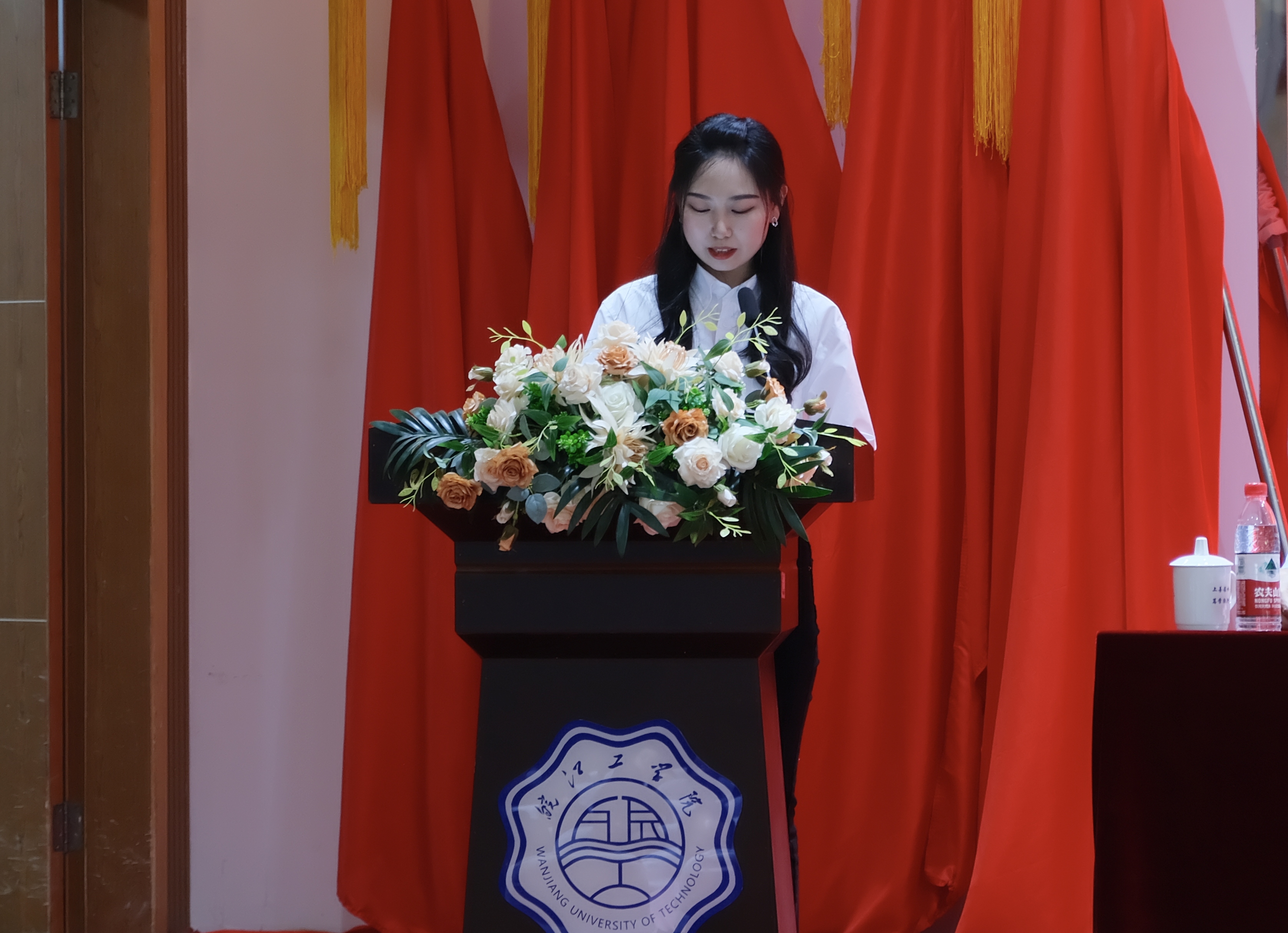 管理学院党总支齐欣然代表优秀共产党员作了发言,她表示作为优秀共产党代表十分荣幸,并对党组织的栽培表达了由衷的感谢。她回顾了自己入党和成为教师的经历,深知自己的重大责任,不仅是传授知识的重任,更是传承红色基因、培养时代新人的历史使命。