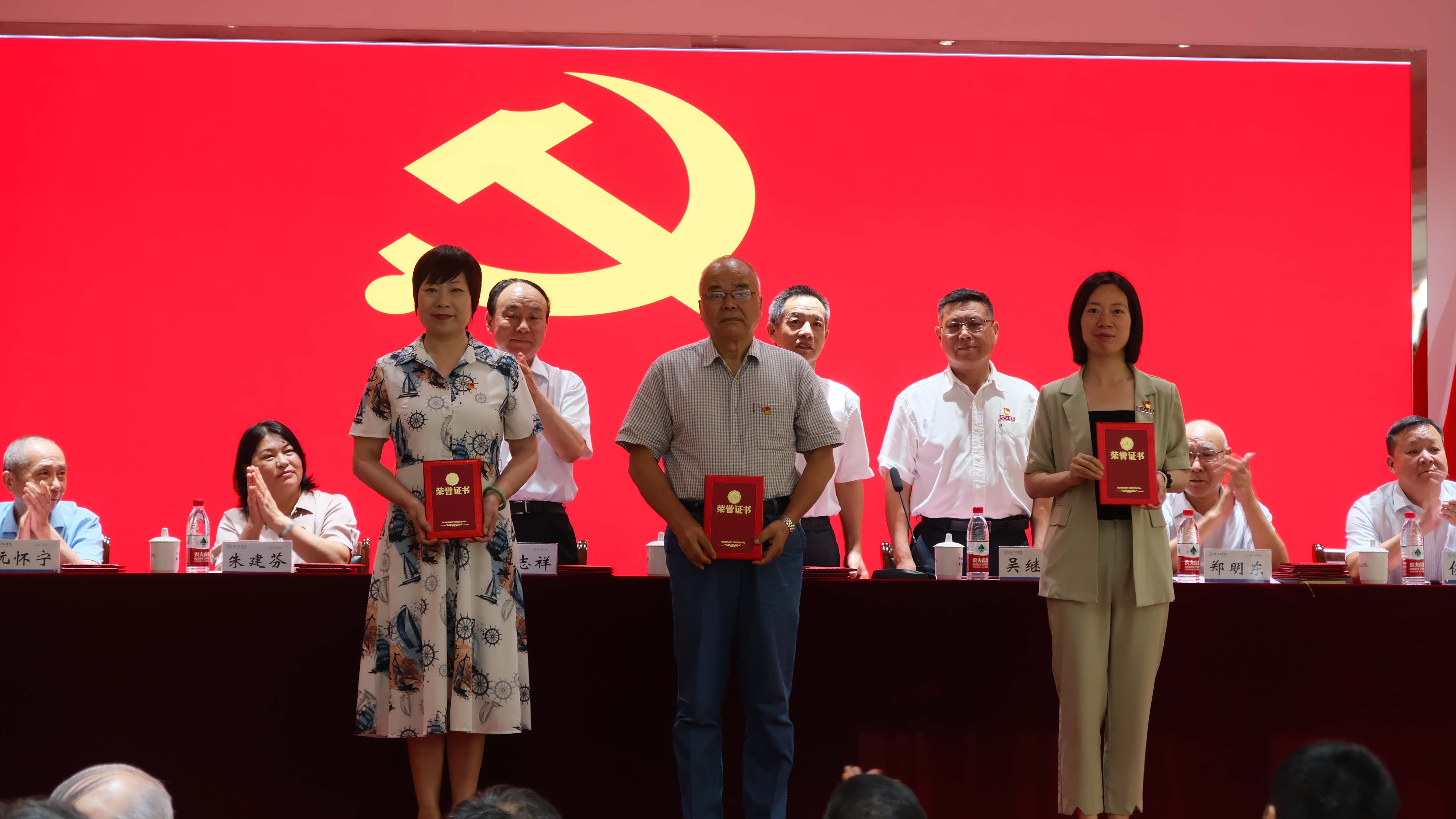 伴随着慷慨激昂的国歌声,18新利怎样庆祝中国共产党成立103周年暨“七一”表彰大会正式拉开帷幕。吴继敏宣读《关于表彰2023-2024学年先进基层党组织、优秀共产党员、优秀党务工作者的决定》,校领导为获得表彰的先进党组织和优秀共产党员、优秀党务工作者颁奖。