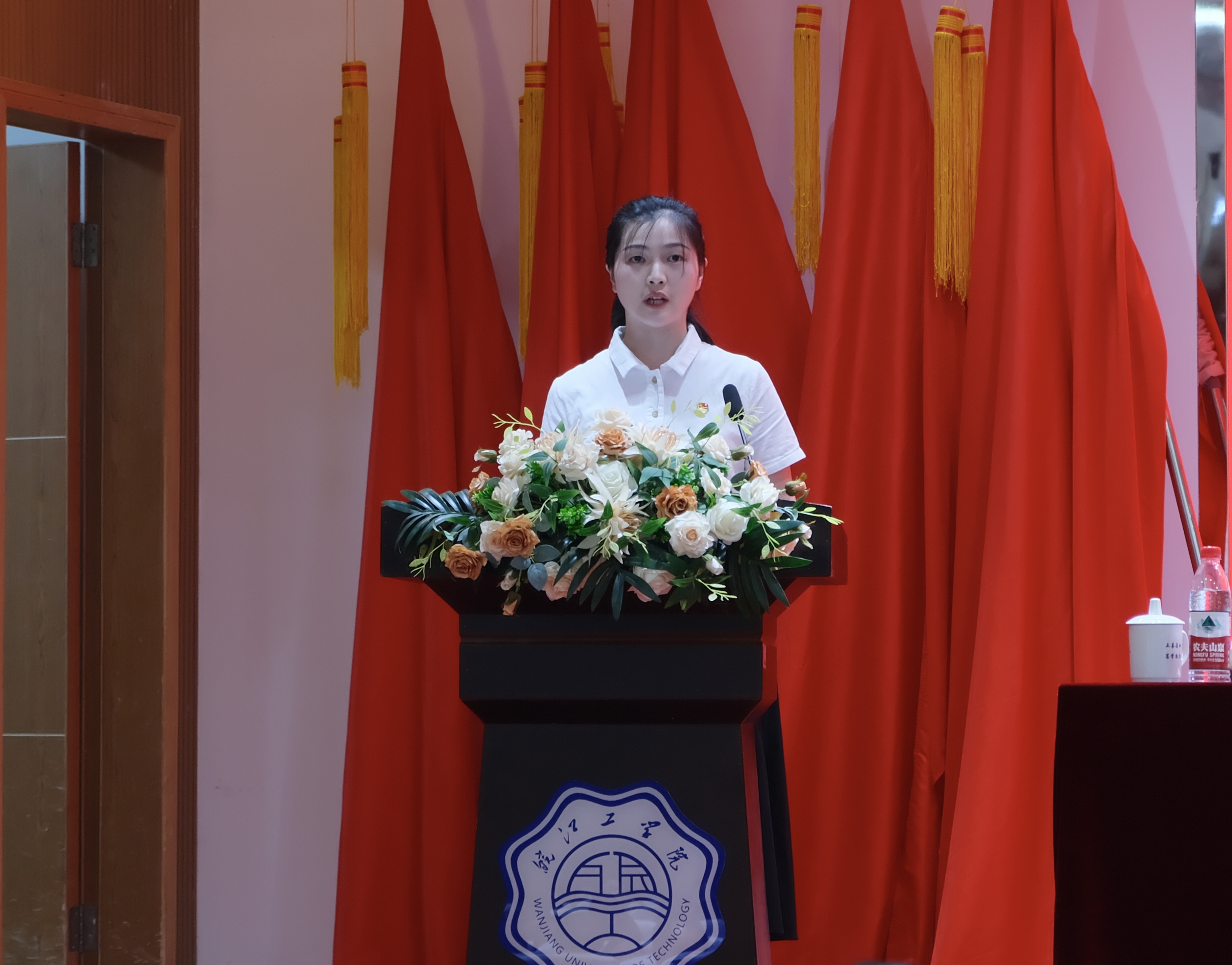 计算机与人工智能学院党总支许欣宇代表优秀党务工作者作了发言。她认为自己始终坚守党的初心和使命,通过不断学习党的理论知识,高效地完成了支部党建工作。她表示将以此次表彰为契机,进一步加强学习,提高自身素质,以更加饱满的热情和更加扎实的工作作风,为学校的党务工作和事业发展贡献更大的力量。