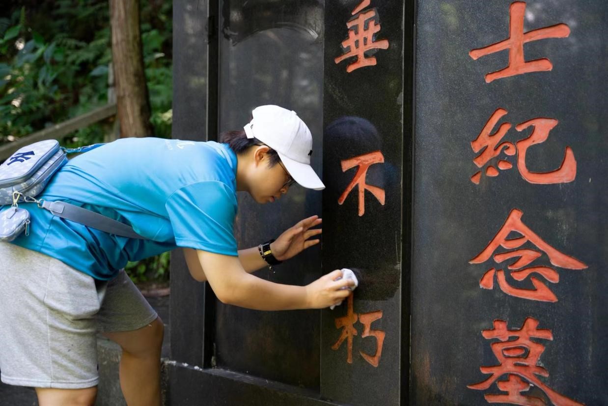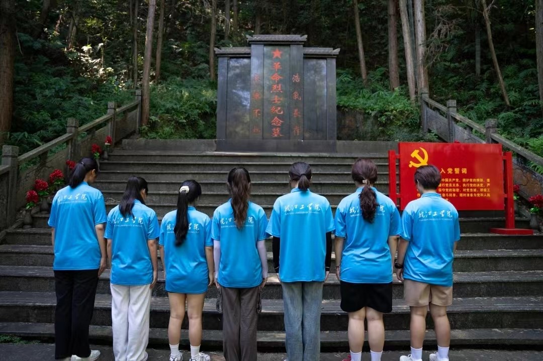 7月4日,实践团队来到小练革命展示馆,大家了解了黄山市第一个党支部的建设历程、小练惨案始末,以及刘柏林、宁春发等人的革命事迹。此次参观让实践团队深刻领悟到革命的艰辛历程,切实感受到了红色精神力量。随后,实践团成员沿着一阶一阶青石台阶向上,来到革命烈士纪念墓之前,通过扫墓、默哀、重温入党誓词的方式,以此来深切缅怀革命先烈,寄托无限哀思。