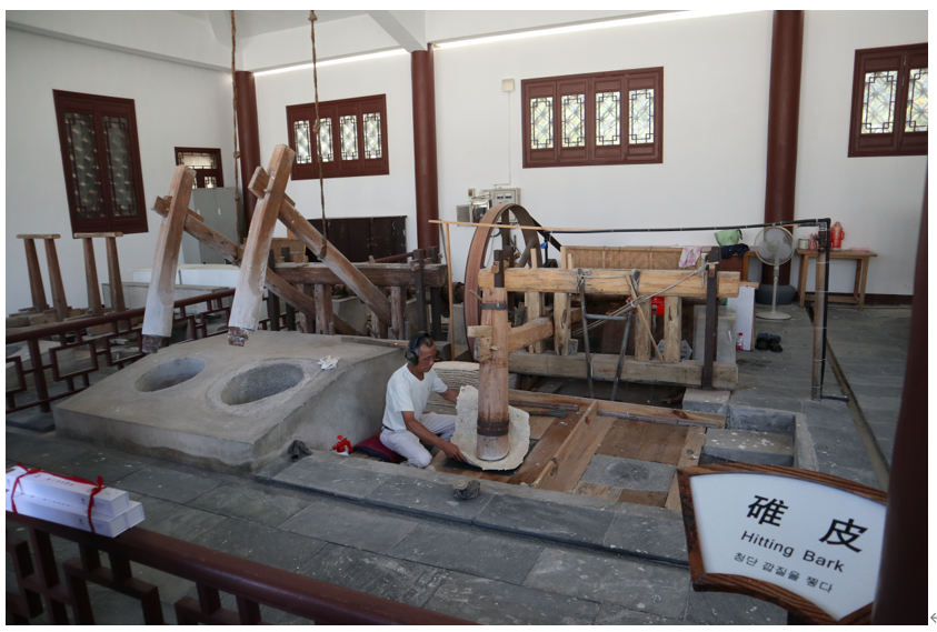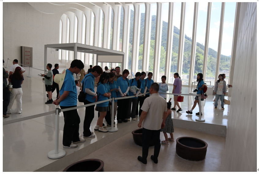 挂牌仪式结束后,实践队伍前往中国宣纸文化园。实践队在讲解员的带领下感受宣纸文化的历史底蕴,深入参观宣纸的制作过程。随后,大家来到“三丈三”车间,认真聆听导游的讲解,详细了解了“三丈三”宣纸从选料、晒滩、皮草选拣这些原材料的准备工作,到碓皮、切皮、踏料、袋料等材料处理,最后到捞纸、晒纸、剪纸等成品制作,其间工序繁琐,流程复杂,条件苛刻。他们亲眼学习到了工匠师傅们如何凭借高超的技艺和丰富的经验,将一张张质地优良的宣纸呈现于大家面前。