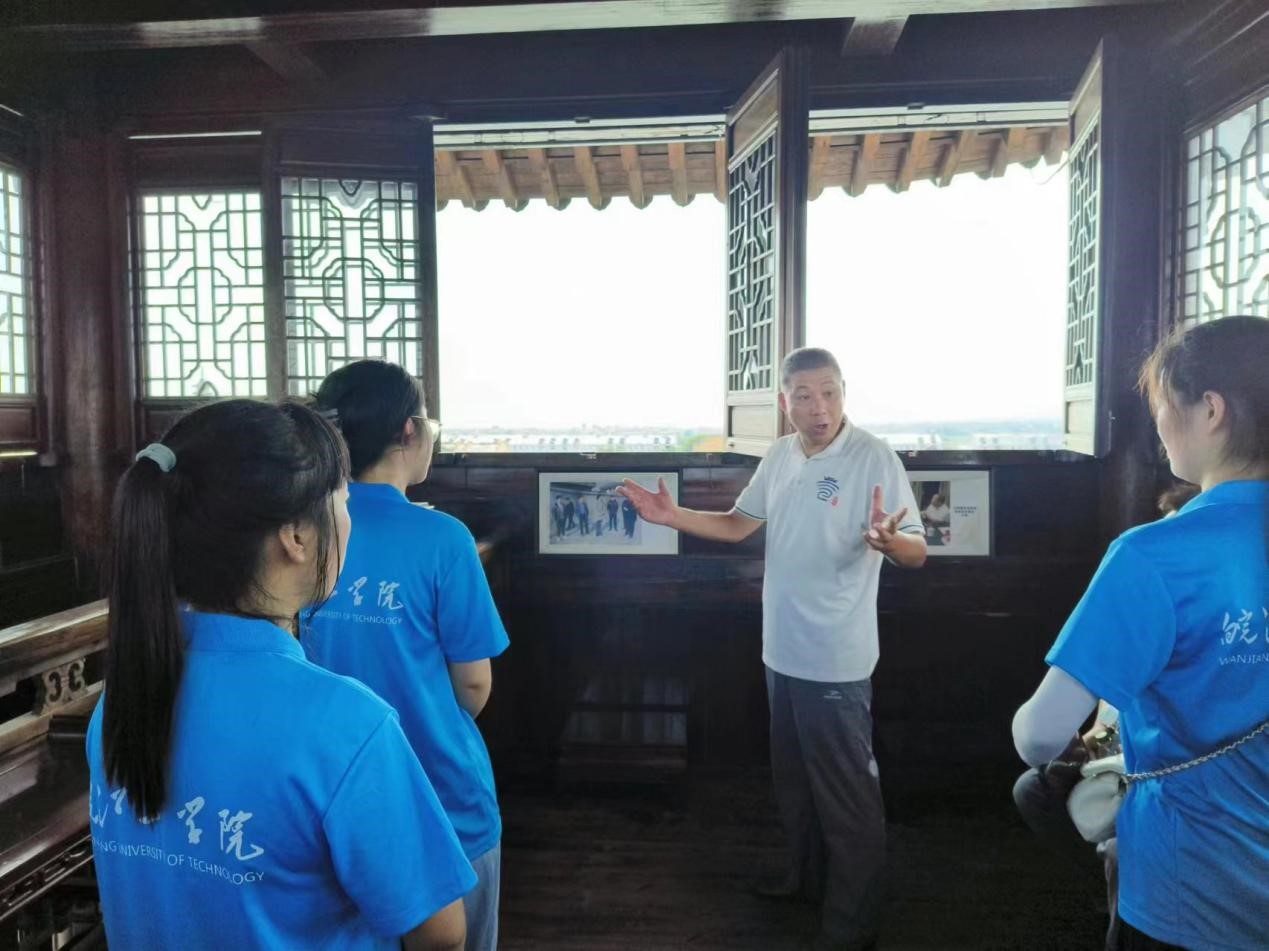 水阳镇作为一个千年古镇历史悠久,源远流长。实践团队在刘业俊老师带领下参观了水阳印象馆,通过老师的讲解和实地的参观让实践团队仿若身临其境置身于这座千年古镇中。墙上的一帧帧一幕幕都记录着水阳的发展历史,大家更加了解了这座江南水乡千年古镇。说到千年古镇就不得不提当地的标志性建筑,说到水阳的标志性建筑就不得不提梓潼阁。梓潼阁位于水阳镇上街头,是该镇历史悠久、文化底蕴深厚的地标性建筑。梓潼阁在水阳江边,是木制的三层楼,屋檐四角吊着风铃,风吹的铃档声及水阳江的浪涛声交织在一起,让人暇想联翩。由刘业俊老师带实践团队参观梓潼阁,介绍阁内陈设并带实践团队体验登高望远,一览美丽水阳江畔。