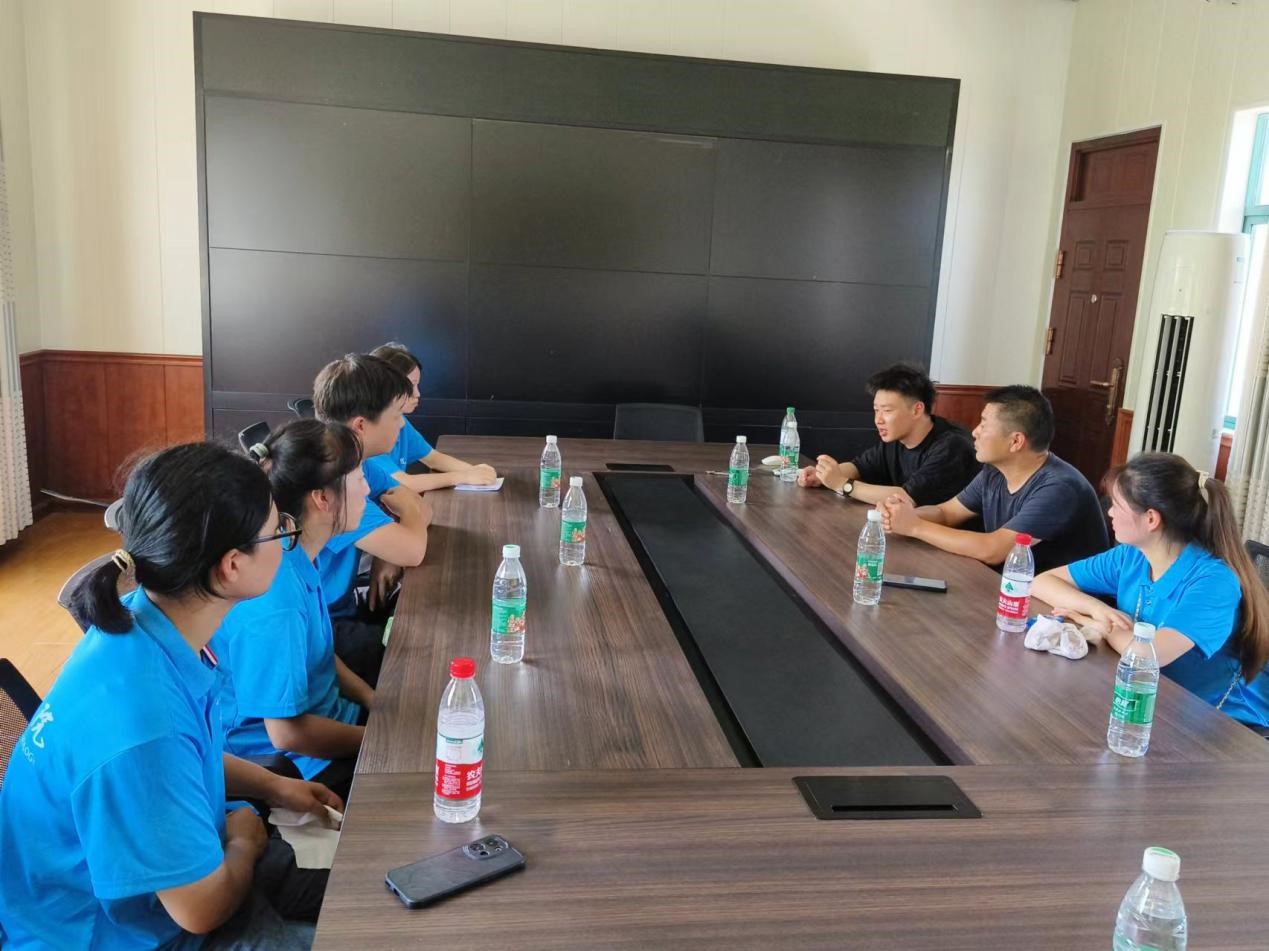 参观结束之后,实践团队还采访了金水源合作社的负责人,实践团队的张钰同学对基地相关负责人进行了采访,采访中负责人表示希望具有对应知识能力的大学生能够与他们携手共进,共同促进农业农村现代化。水阳政府团委书记黄果对会议相关内容进行了补充说明。