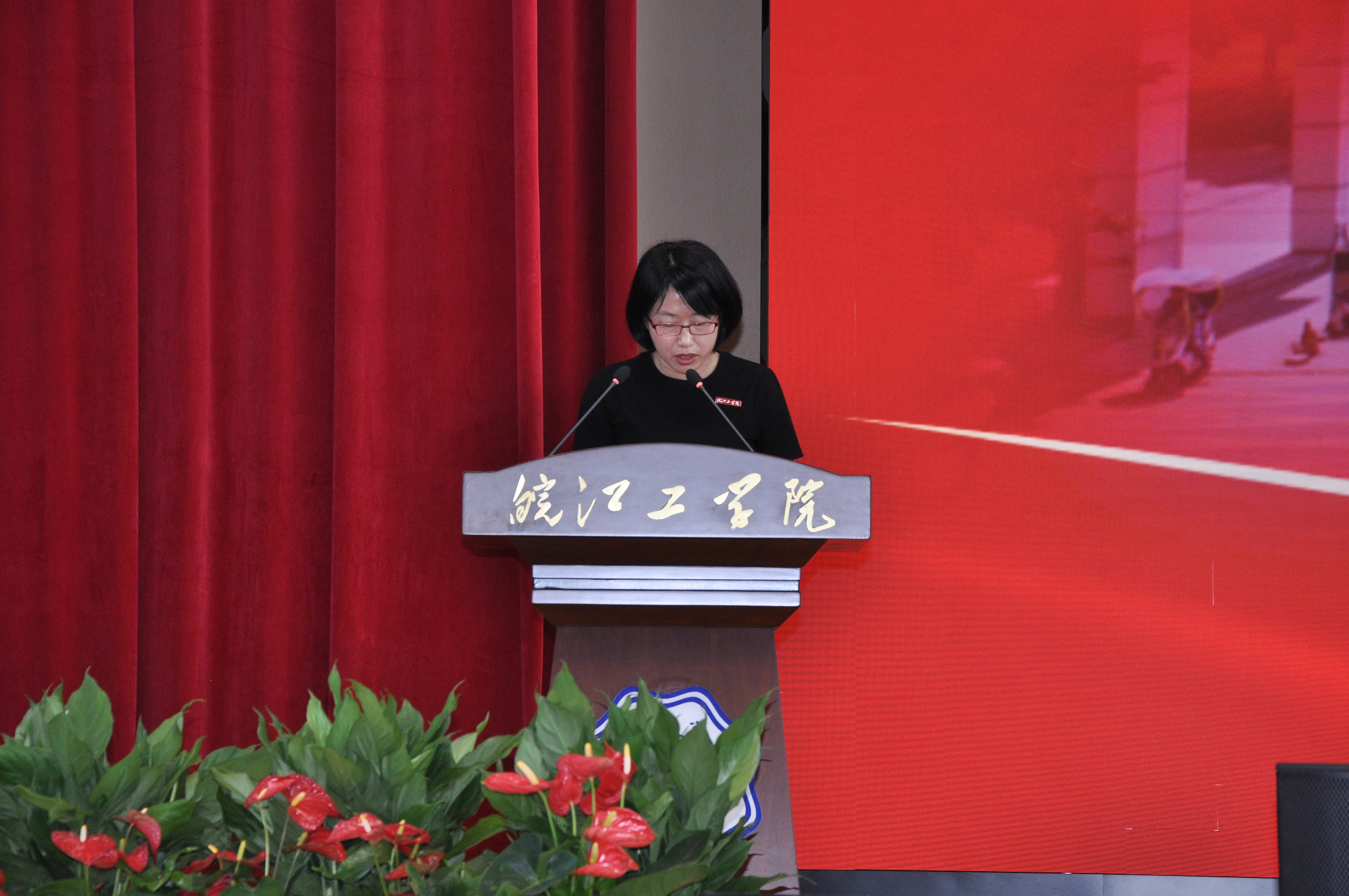 电信工程学院副院长纪萍代表教师作了发言,她希望学生能够在本科阶段做到三点:第一要珍惜时光,不负青春,努力奋斗;第二要积极主动,注重实践,勇于创新;第三要诚实守信,尊师爱学,服务社会。