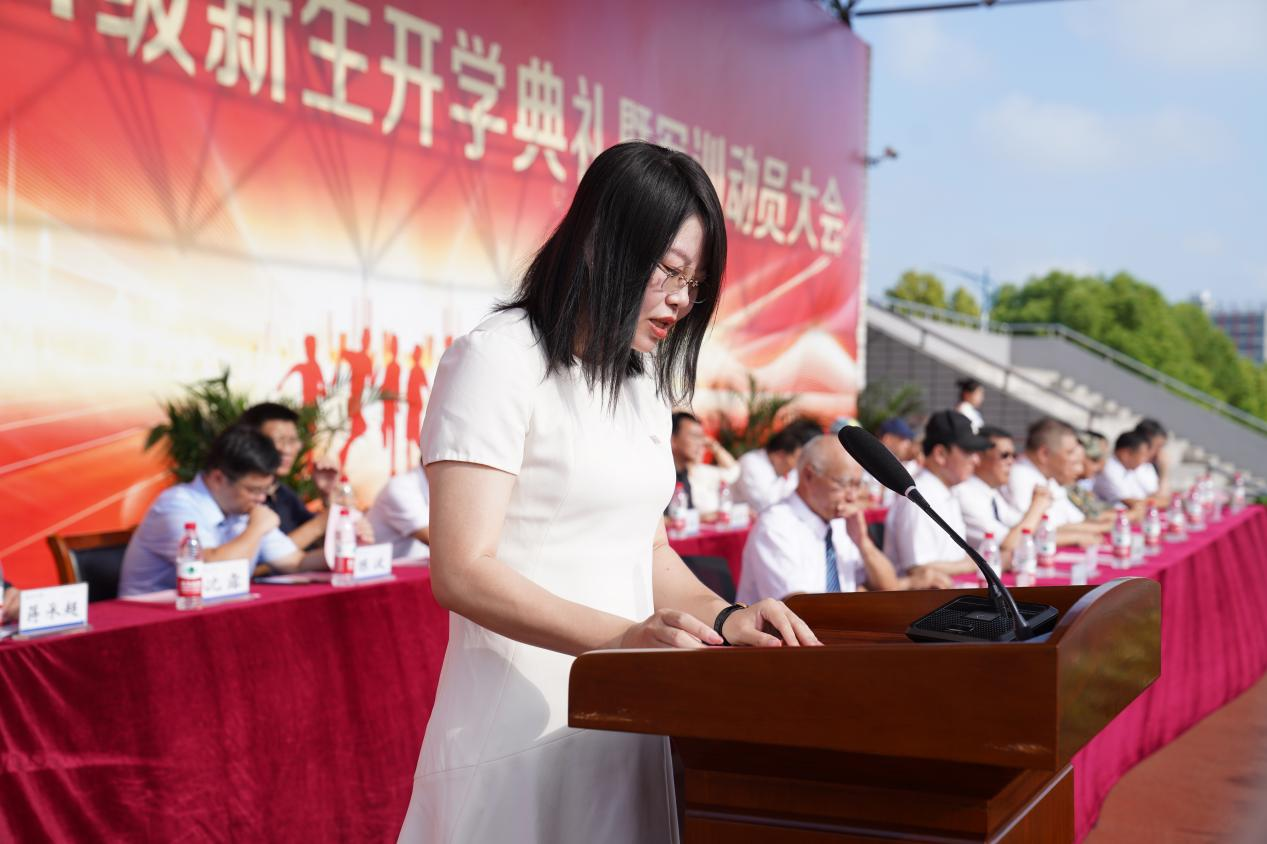 吴继敏代表全校师生对2024级新生的到来表示热烈欢迎,对家长和老师的辛勤培养致以崇高敬意,对来校指导军训工作的教官们表示衷心感谢。他希望新生们育德于心,立大德方能成“大人”;学会做人,铭记“上善若水”的校训,时刻注意高尚德行的培养和内在品格的塑造;益才于学,以无畏的勇气和坚定的信念,为自己的梦想坚持不懈、全力以赴。