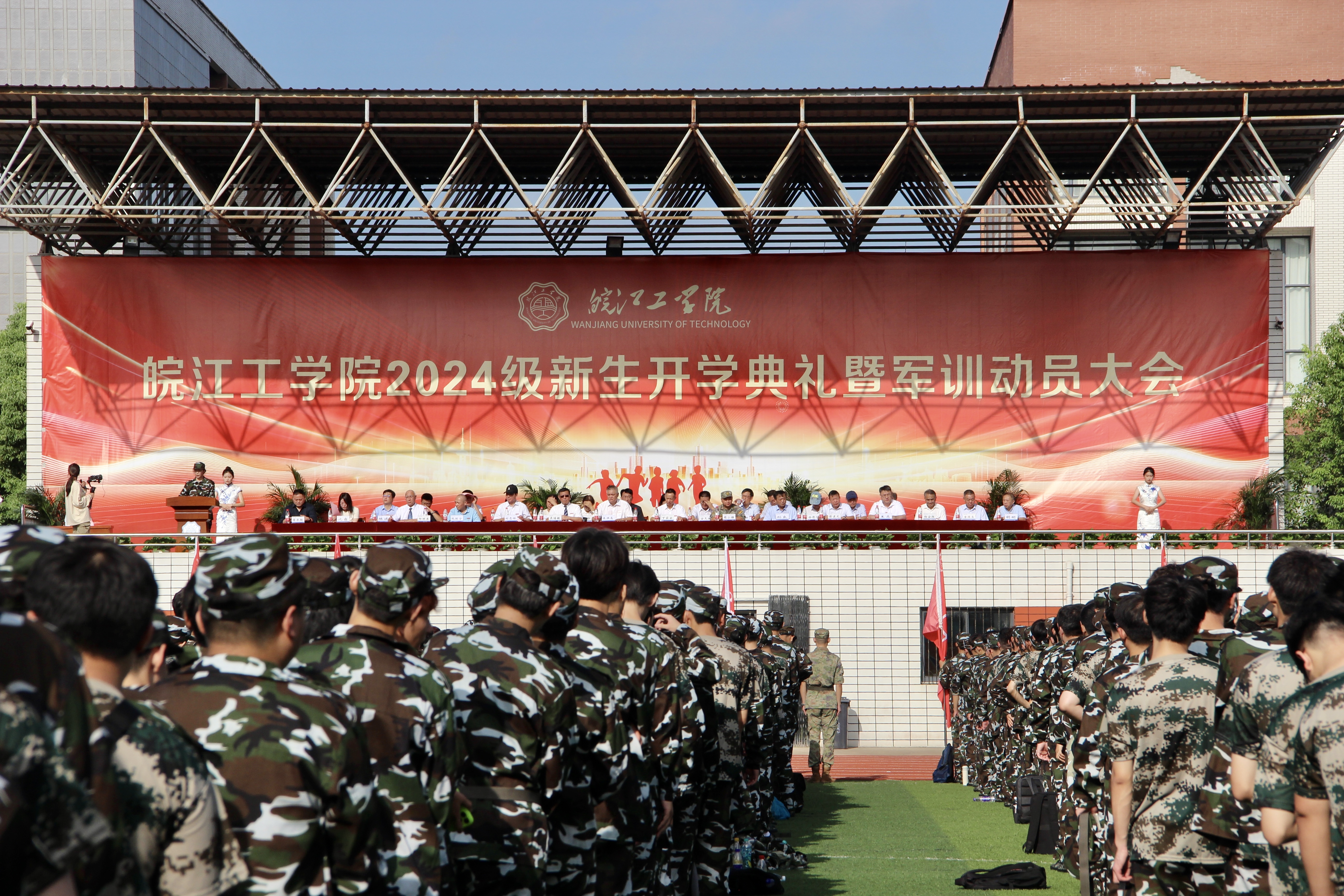 9月9日,我校2024级新生开学典礼暨军训动员大会在新利体育在线官网首页登录入口田径场举行。董事长朱洪高,省督导专员、校党委书记丁家云,党委副书记、校长吴继敏,咨询委主任刘志祥,党委副书记孙良,常务副校长郑明东,副校长侯进元、阮怀宁、王志,各二级学院院长及各职能部门负责人出席大会,大会由郑明东主持。