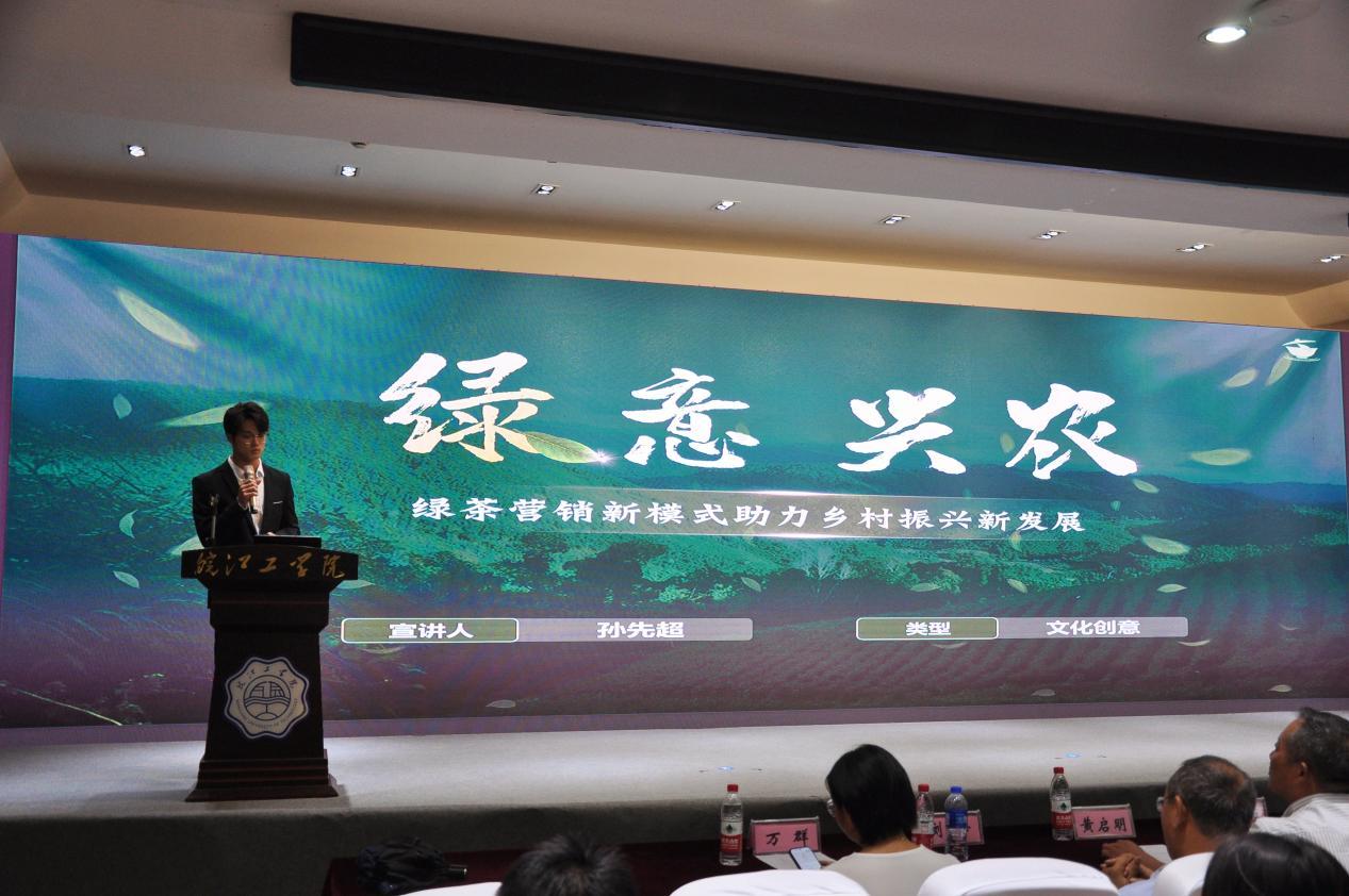 我校艺术设计学院的孙先超同学、水利工程学院的刘彦同学和电信工程学院的乔倩同学分别上台对所负责的优秀科创作品进行了展演。
