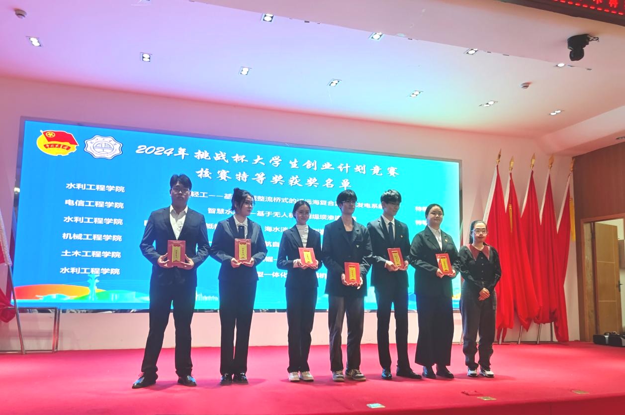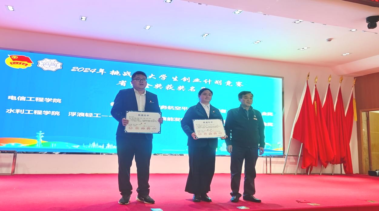 随后,与会领导为2024年“挑战杯”大学生创业计划竞赛中表现突出的2个省级金奖、4个省级银奖、11个省级铜奖、6个校级特等奖、14个校级金奖项目团队进行颁奖。据悉,在本次竞赛中共有2支团队荣获国家级铜奖,实现我校在全国“挑战杯”赛事上的新突破!其中电信工程学院《低空经济——政务航空平台先行开拓者》项目团队获得主体赛国家级铜奖,水利工程学院《浮浪轻工——自适应河流波浪能发电装置引领绿色能源新时代》项目团队获得配套交流活动“秦创原”创新挑战赛国家级铜奖。