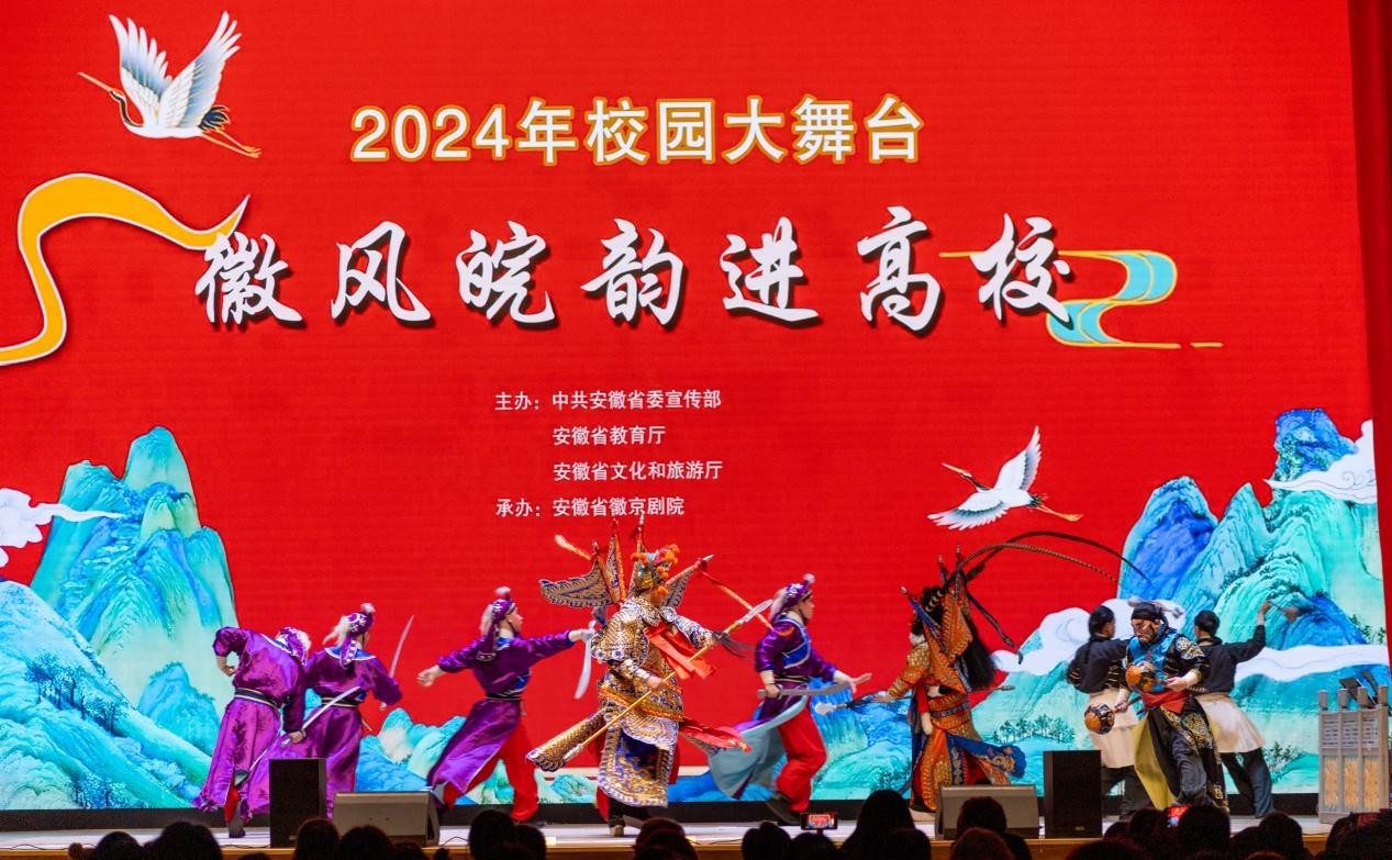 12月19日晚,由中共安徽省委宣传部、省教育厅、省文化和旅游厅主办“校园大舞台”徽风皖韵进高校活动在18新利怎样霍里山校区体育馆举行,来自安徽省徽京剧院的表演艺术家们带来一场精彩绝伦的视听盛宴,近千名师生现场观看演出。