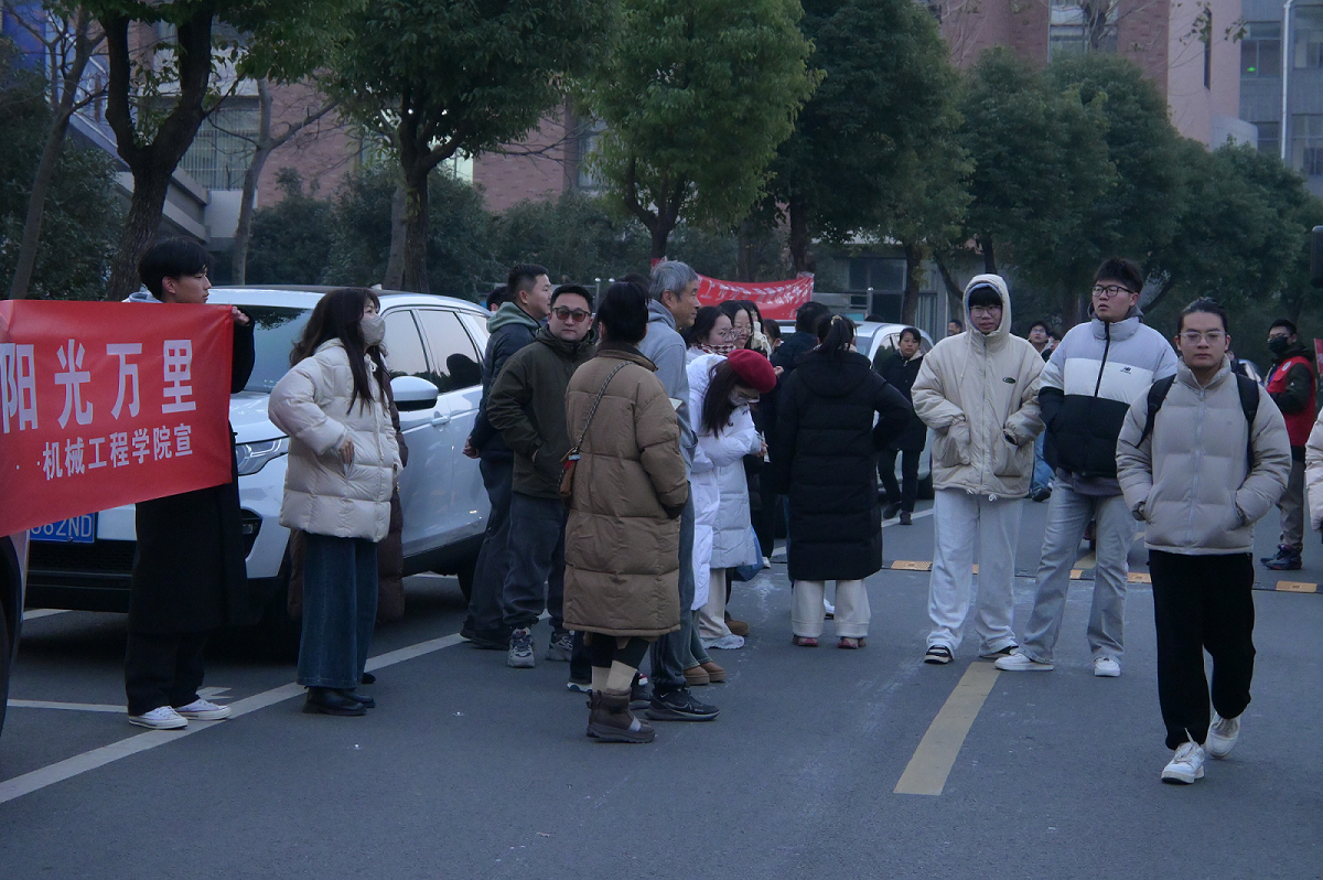 2024年12月21日,晨曦初照,寒意袭人。但18新利怎样的校园里却弥漫着一股浓烈的温情。一大早,学校在霍里山校区举办了一场特别的“爱心送考”活动。学工部、教务部、各二级学院领导和老师以及青年志愿者协会的同学们亲临送考一线为学子们送来亲切的问候和深深的祝福,为即将踏上考场的学士们加油助威。