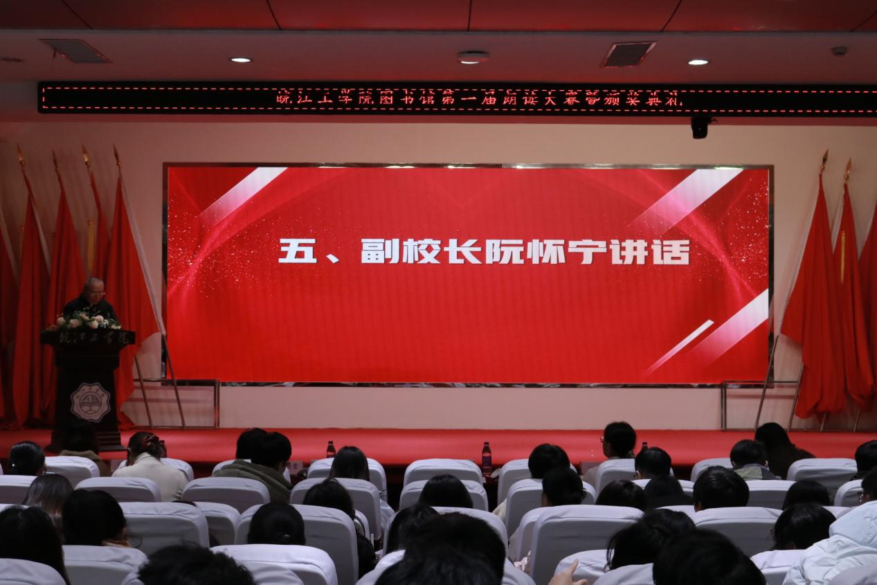 12月18日下午,一场别开生面的朗读大赛活动在我校霍里山校区图书馆报告厅圆满举行,众多师生齐聚一堂,共同见证了知识与声音交织的精彩时刻。副校长阮怀宁,教务部部长江冰,图书馆陈馆长,团委书记、学生工作部副部长尚贤燕,学生工作部副部长许戎,各二级学院分团委书记、图书馆全体工作人员、部分学生代表参加了活动。