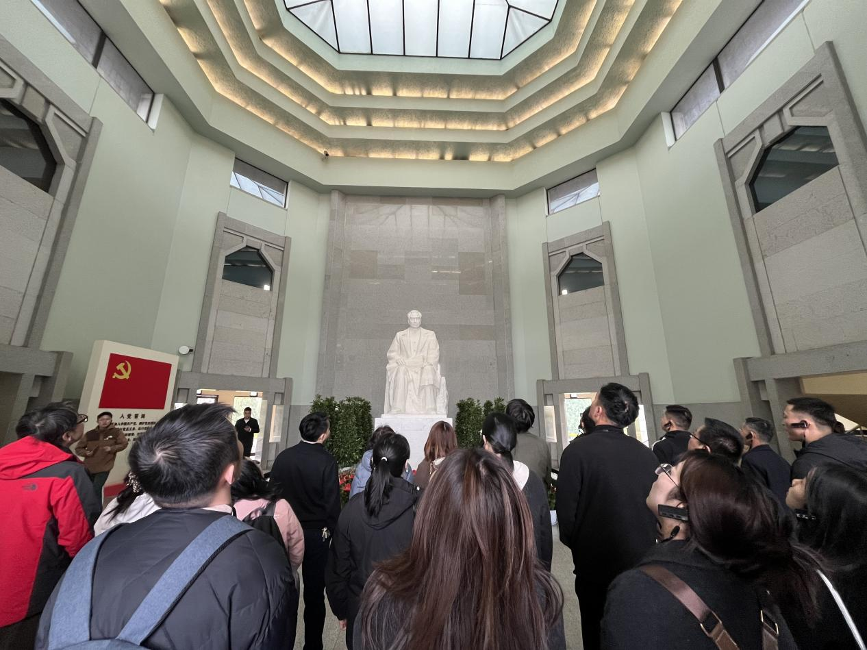 3月29日上午,督导专员、党委书记丁家云和骨干教师党员教师代表一行参观周恩来纪念馆及故居。大家怀着无比崇敬的心情从纪念馆主广场拾级而上来到了周恩来纪念馆。纪念馆内松柏苍翠,庄严肃穆。在周恩来总理座像前,全体同志肃立致敬,向总理座像三鞠躬,深切缅怀周恩来同志的丰功伟绩,追思其伟人风范和崇高精神。