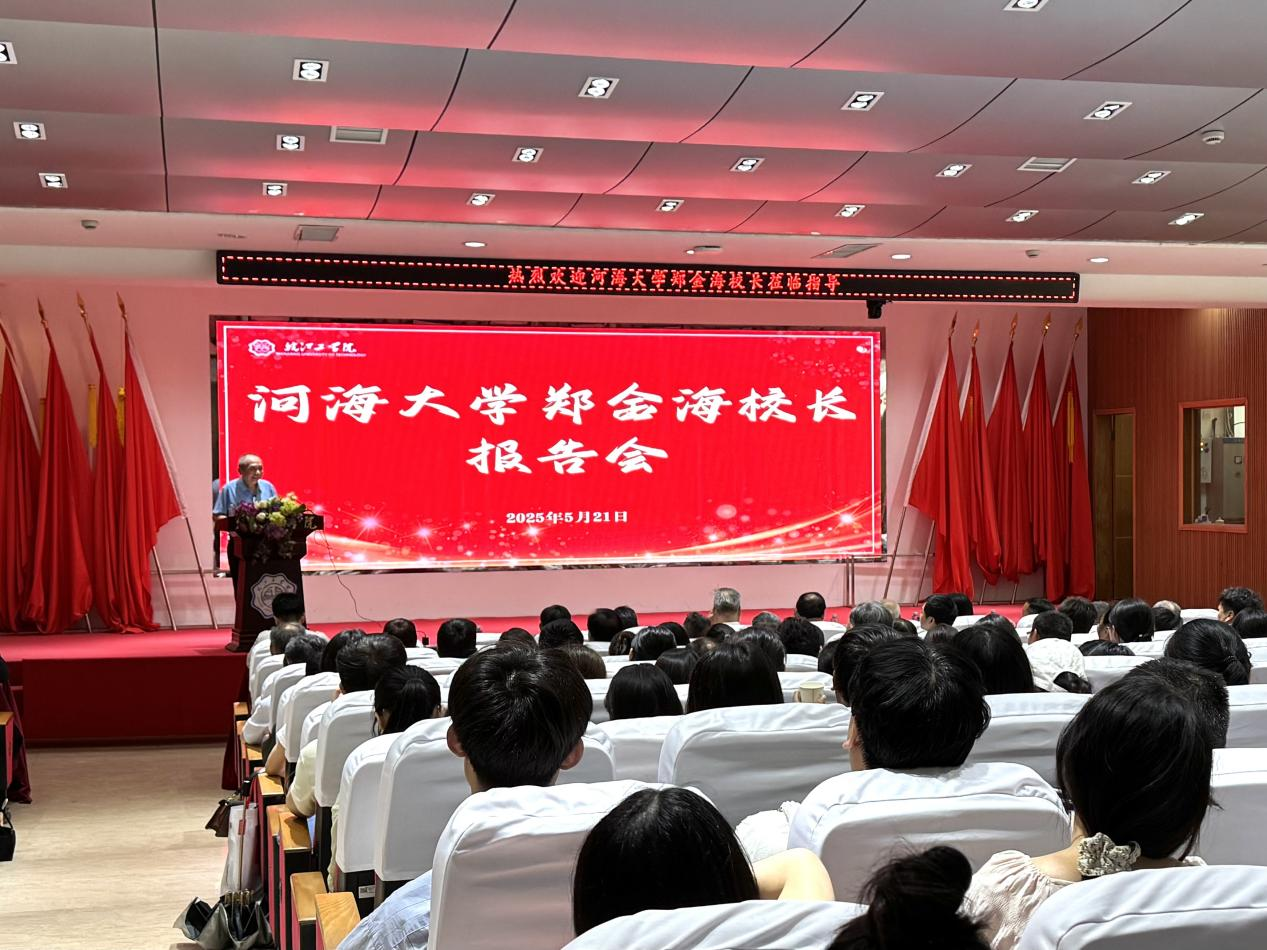 5月21日,河海大学校长、党委副书记郑金海教授应邀莅临我校,以《学科专业发展与师资队伍建设的思考与实践》为题开展专题讲座。董事长朱洪高,校党政领导班子成员、咨询委员会全体委员、全体中层干部及各学院教研室负责人参加讲座。副校长阮怀宁主持讲座。