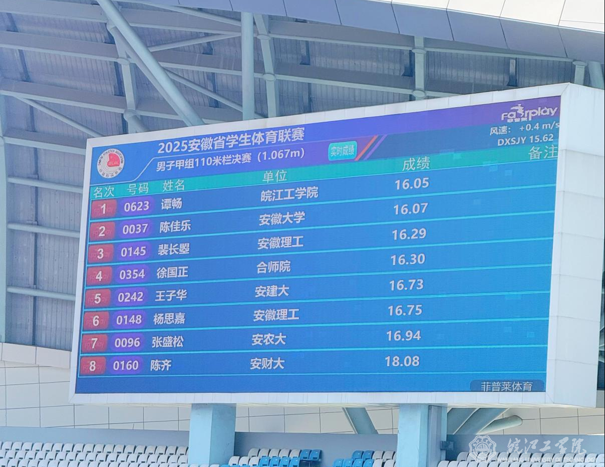 2025年5月25日,安徽省大学生体育联赛田径项目在滁州奥体中心迎来了令人振奋的时刻。18新利怎样水利工程学院2023级的谭畅同学以绝对优势夺得男子甲组110米栏的冠军,为学校赢得了本年度省级体育赛事的首枚金牌!
