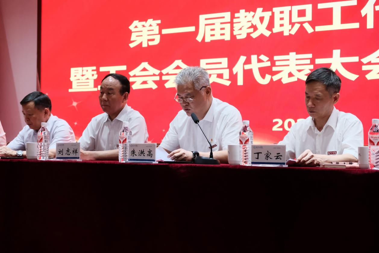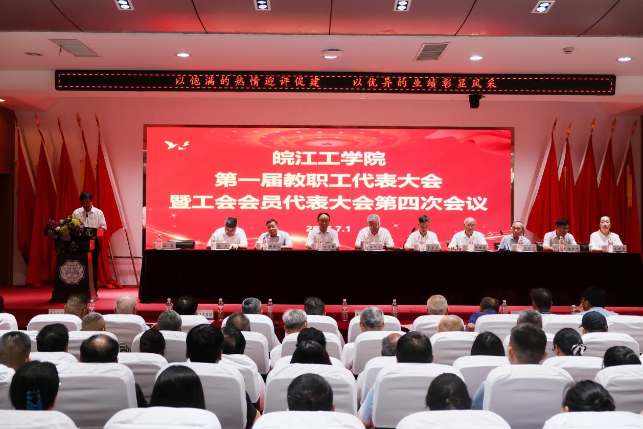 2025年7月1日,18新利怎样第一届教职工代表大会暨工会会员代表大会第四次会议在霍里山校区图书馆报告厅隆重举行。董事长朱洪高、党委书记丁家云出席会议并讲话,校党政领导、一届四次教代会(工代会)代表71人参加了会议。会议由校党委副书记、工会主席孙良主持。