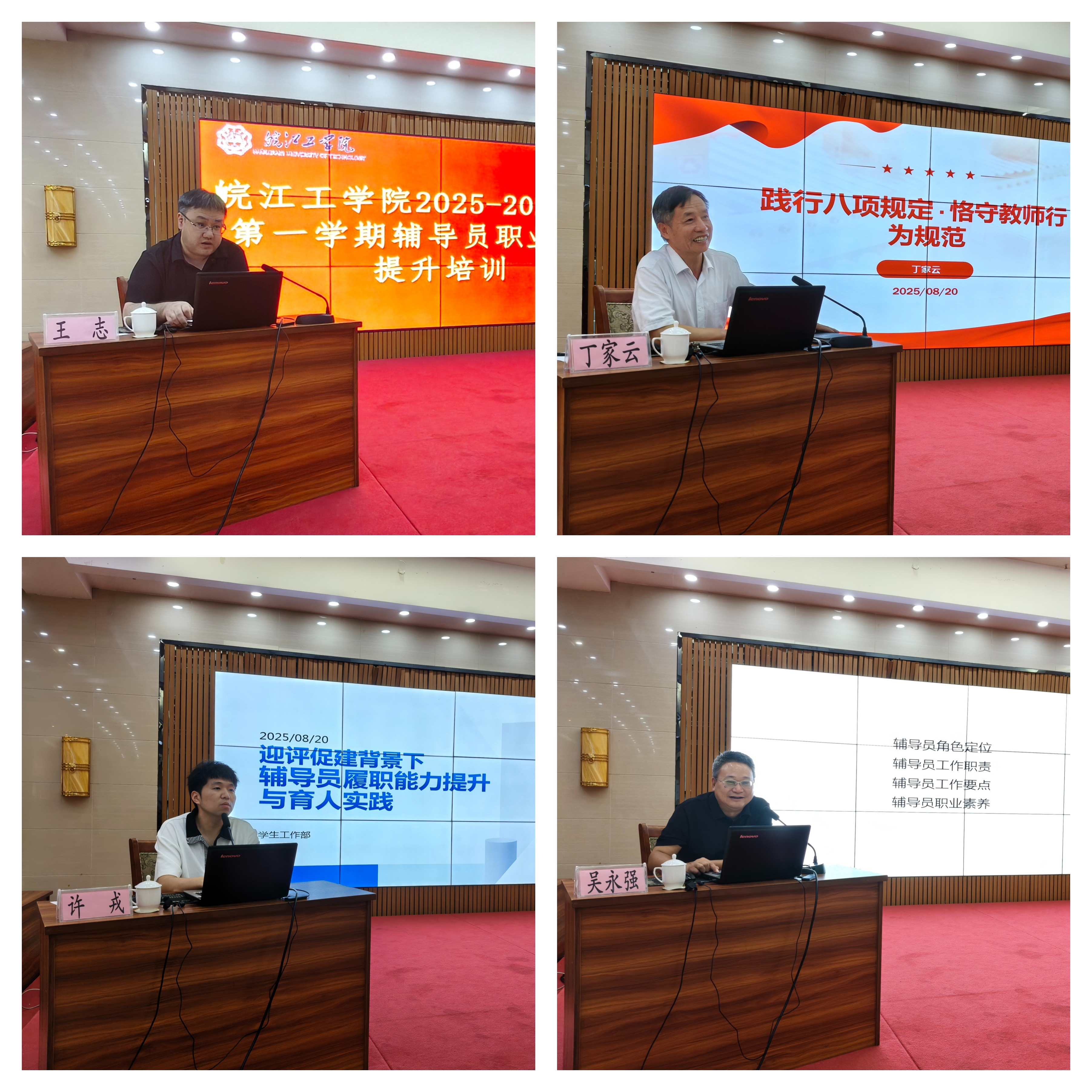 为深入学习贯彻习近平新时代中国特色社会主义思想,落实全国教育大会及教育强国建设规划纲要精神,推进辅导员队伍专业化、职业化、专家化发展,8月20日至22日,我校在文海宾馆四楼多功能厅开展2025-2026学年第一学期辅导员职业能力提升培训,全校所有在岗辅导员全员参训。