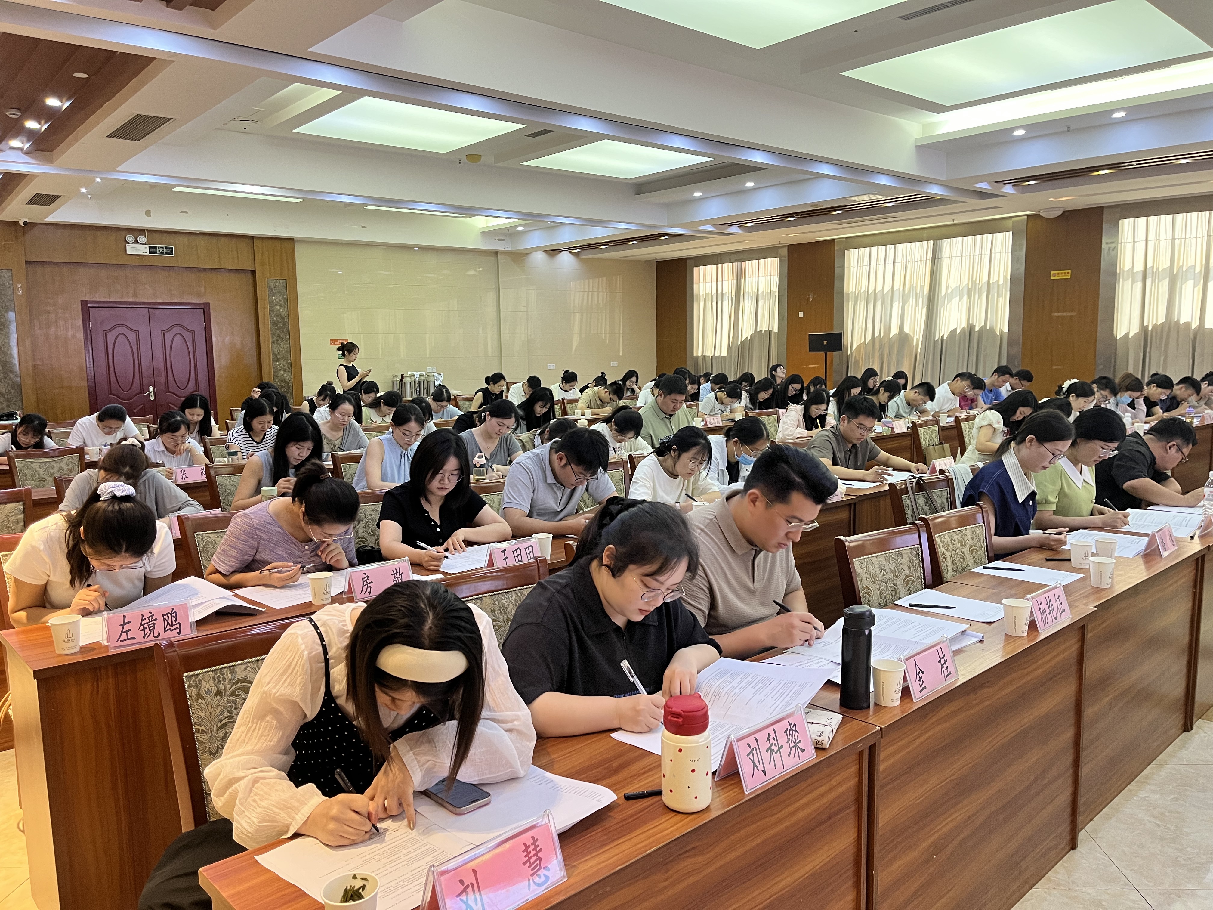 8月21日下午,参训辅导员按学院分为四组,围绕 “迎评促建,共筑优良学风” 主题展开讨论,结合本科教学合格评估要求,就课堂状态提升、宿舍文化建设、学业困难学生帮扶等议题深入交流,形成多项切实可行的学风建设方案。8月22日上午,各组汇报讨论成果,充分展现培训实效。培训尾声,全体辅导员参加业务能力笔试,以考促学巩固培训成果。