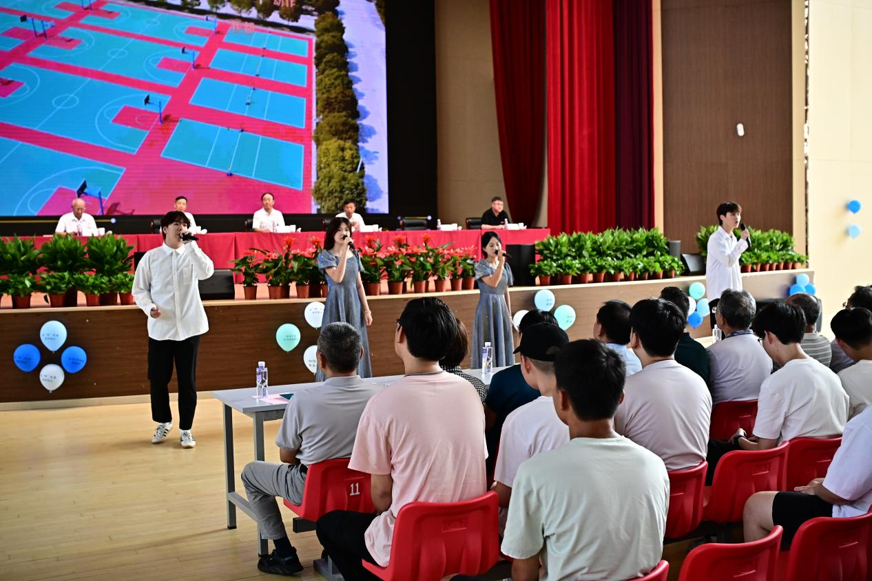 一首由校大艺团倾情演绎的《我的未来式》拉开了典礼序幕,青春明快的旋律在体育馆内回荡,表演者们以饱满真挚的演唱,将对新生的欢迎与对青春的礼赞融入表演之中。台下新生们纷纷展露笑容,有的轻轻跟着旋律哼唱,有的挥动双手互动,现场氛围瞬间被点燃,满是朝气与期待。
