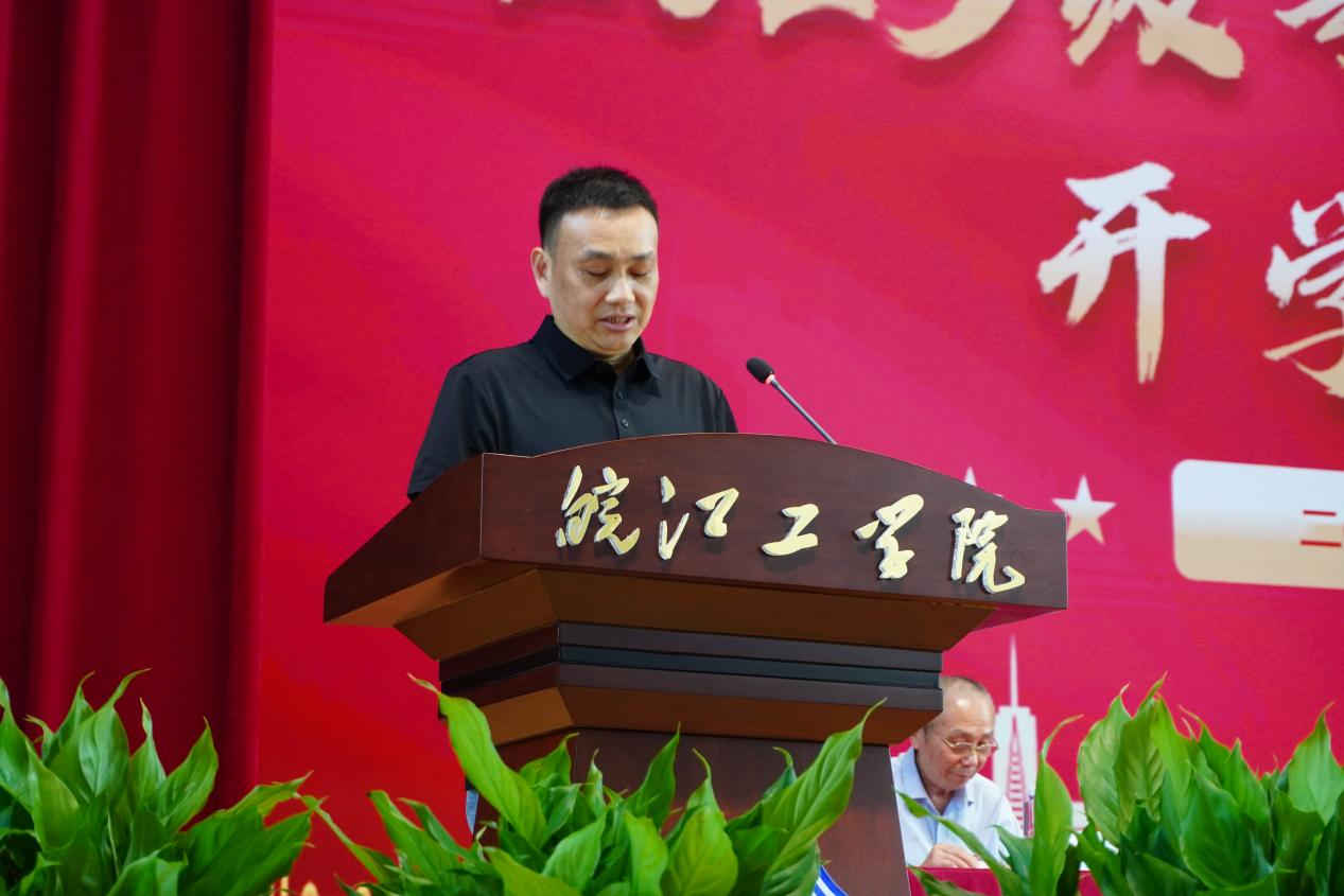 2025级电气工程及其自动化专业的秦品智同学作为新生代表发言。他回顾了备考历程中的艰辛与迷茫,分享了在工作与学习双重压力下坚持求学的坚定信念,并号召同学们在新的起点上明确目标、勤勉治学。