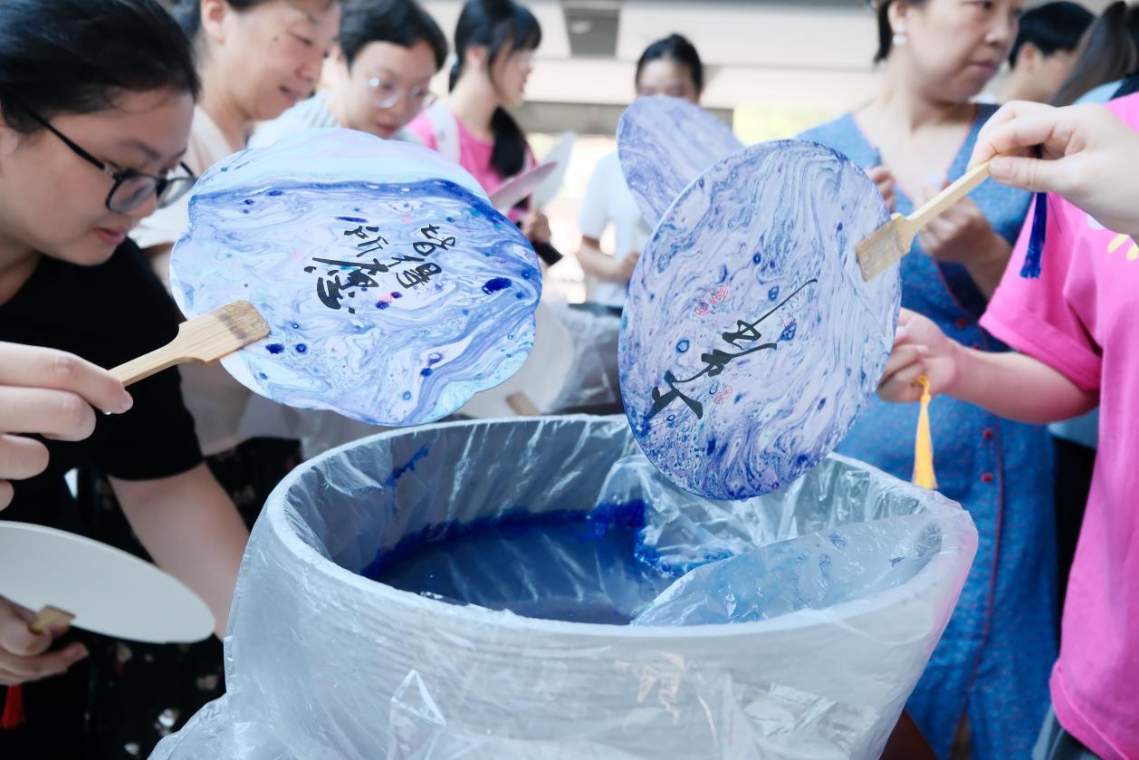 为强化师生互动、深化文化浸润,图书馆精心策划并开展了一系列特色活动。霍里山校区图书馆一楼特设教师节专属拍照打卡区,供师生驻足合影留念,用镜头定格尊师重教的温馨情谊;同时设置“感恩留言墙”,学生以手写便利贴的形式写下对教师的敬爱与祝福,字里行间满溢教育温情。此外,图书馆还组织了非遗手工体验活动,教师通过学习制作漆扇这一传统技艺,深入感悟中华优秀传统文化的独特魅力。