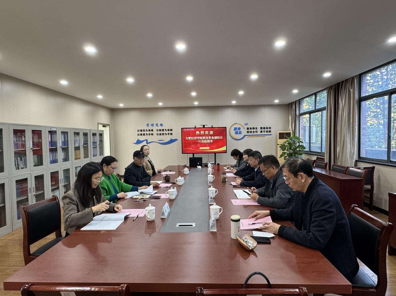 10月22日,合肥经济学院常务副校长郭亮,党委委员、教务处处长武月锋一行来我校调研交流。常务副校长郑明东,教务部、人力资源部、质控办负责人参加交流活动。
