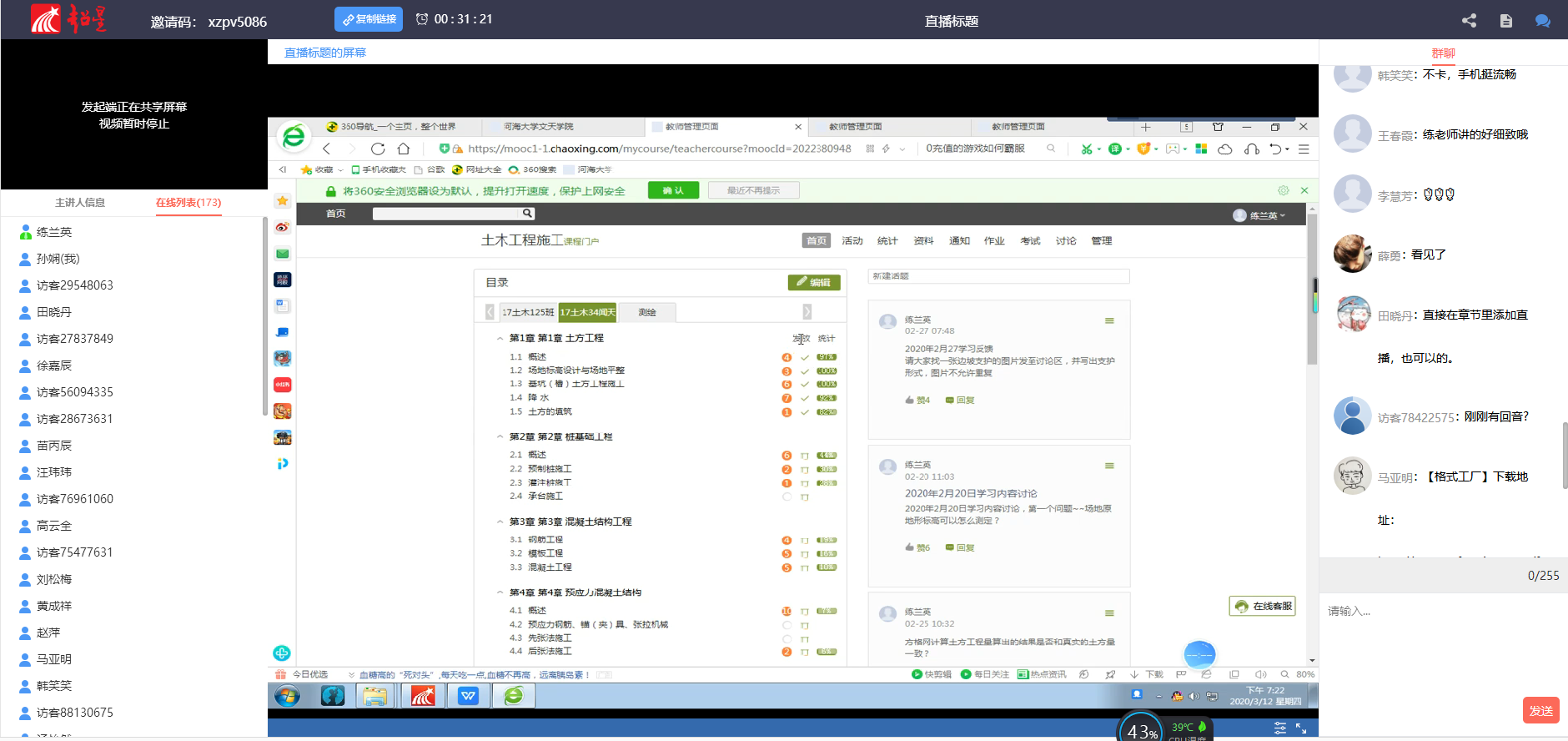 基于对四周线上教学工作总结,为教师提供经验交流的平台,促进广大教师更高效地开展线上教学活动,我校教务部于3月12日组织展开了线上教学经验分享交流会。交流会邀请了土木工程学院教师练兰英作为代表,通过超星学习通直播平台和全校教师分享她的教学经验。