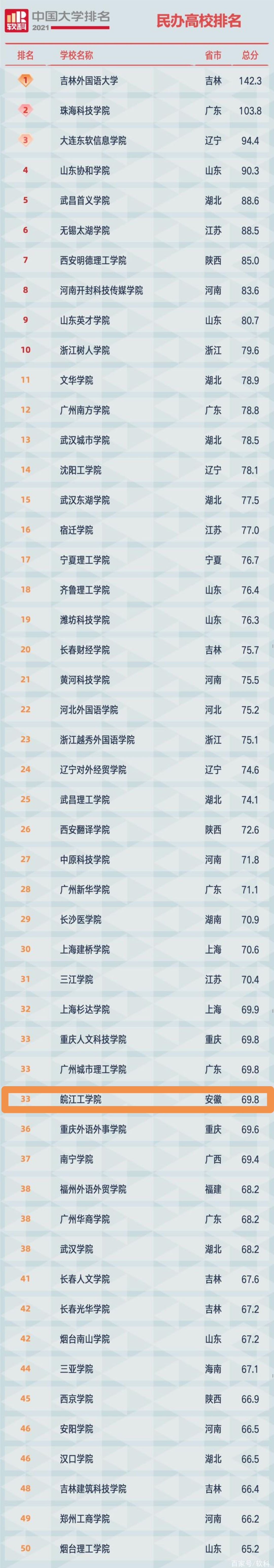 近日,高等教育评价专业机构软科发布了“2021软科中国大学排名”。全国1200多所高校参评,我校在“2021民办高校排名”中位列安徽省第一位。