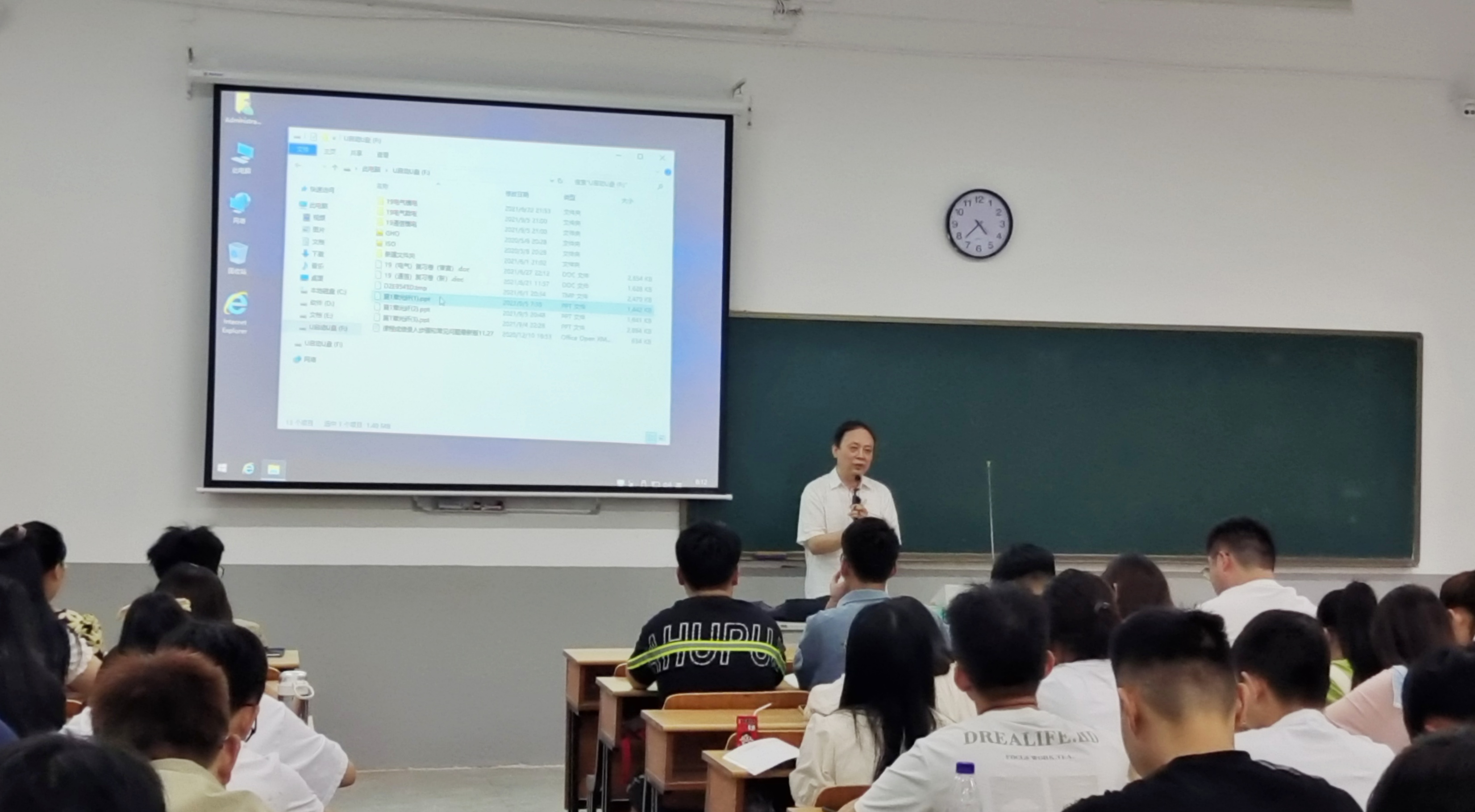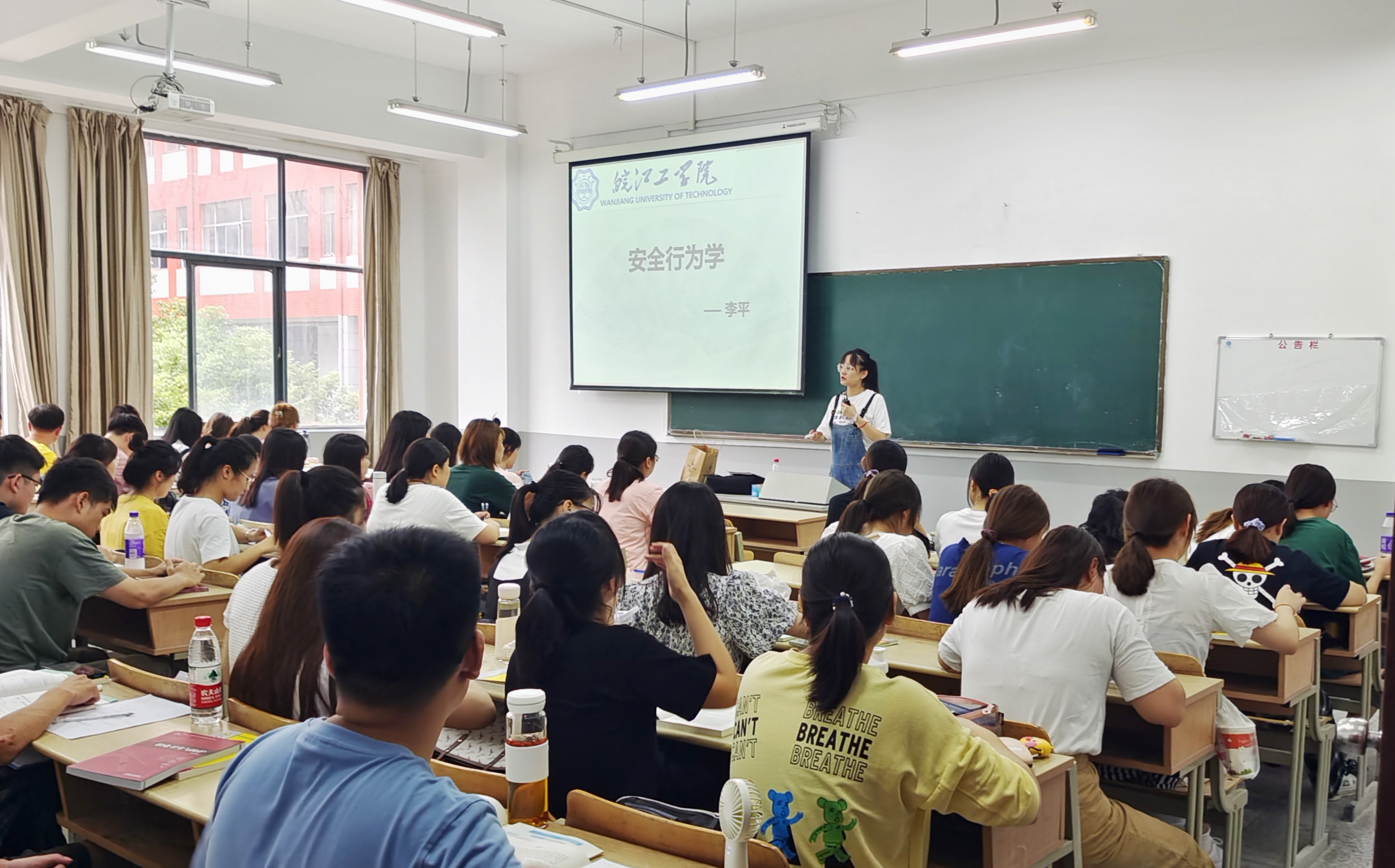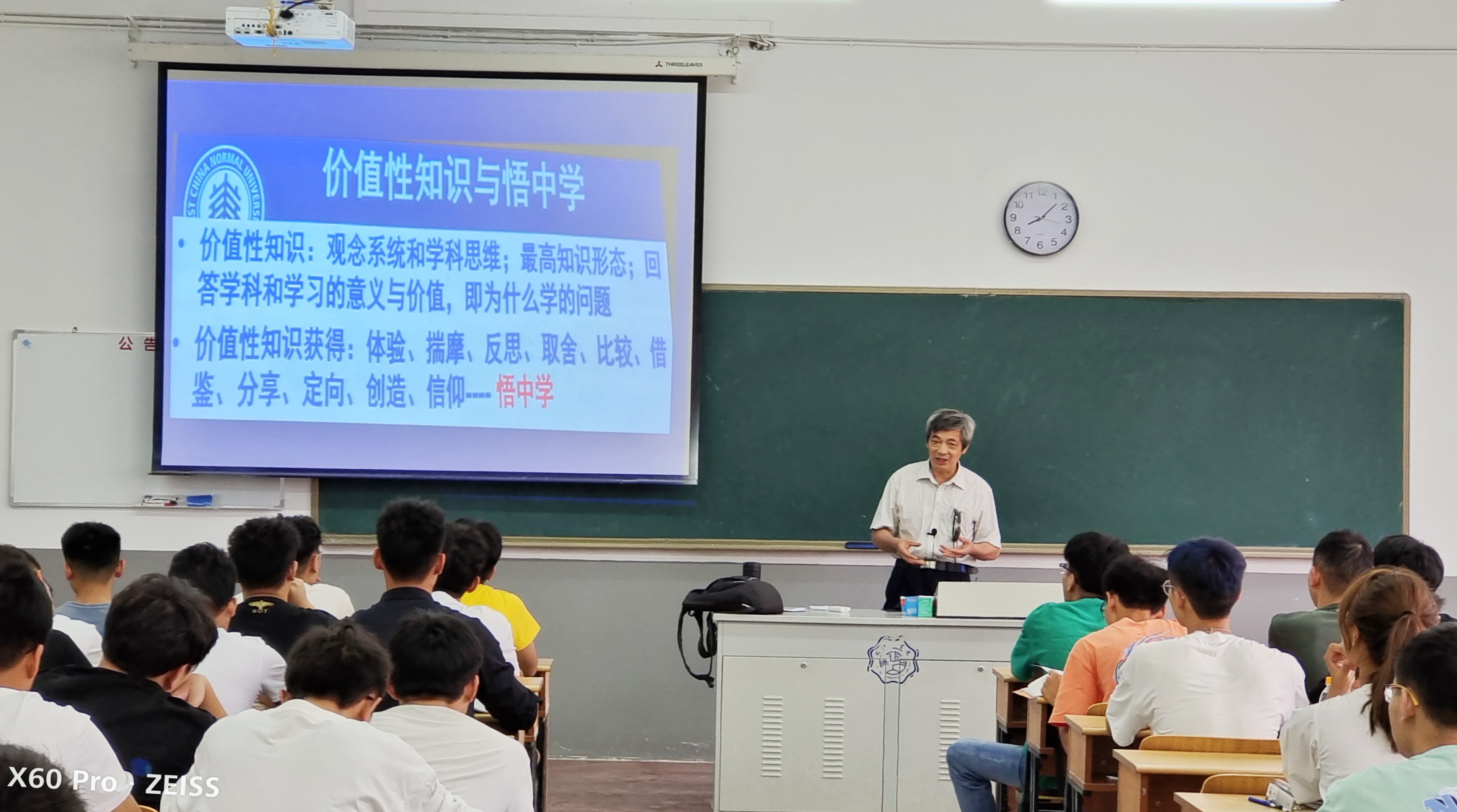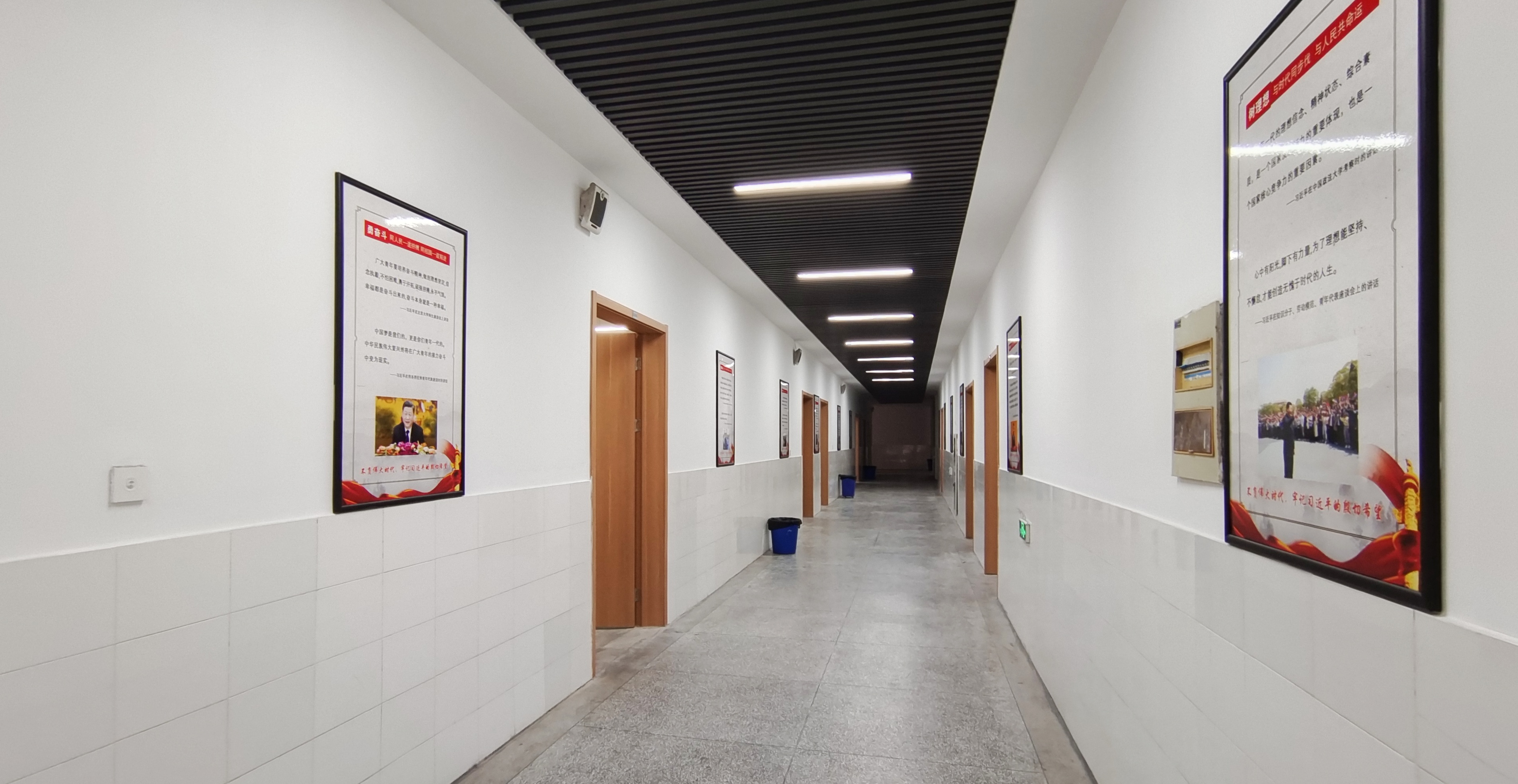 我校利用暑假完成了AB教学楼的升级改造工程,走进教学楼,不由得眼前一亮。目之所及,面貌一新,令人心情愉悦。教学楼走廊镶嵌着社会主义核心价值观和习近平总书记对青年人的深情寄语。教室内,窗明几净,墙壁洁白,教学楼更换了近百台多媒体设备,改善了教师学生的教学条件。课堂上,教师们教学准备充分,上课热情饱满,学生听讲专注,课堂秩序井然,吴继敏也坐到教室中,和同学们一起听老师的“开学第一课”。
