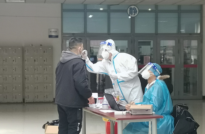 20日下午,学校联合雨山区卫健委和郑蒲港新区管委会,组织全体返校师生进行全员核酸检测。师生按照通知要求,戴好口罩、携身份证,分七个批次有序开展检测。截至2月20日晚,万余名返校师生核酸检测工作圆满完成。