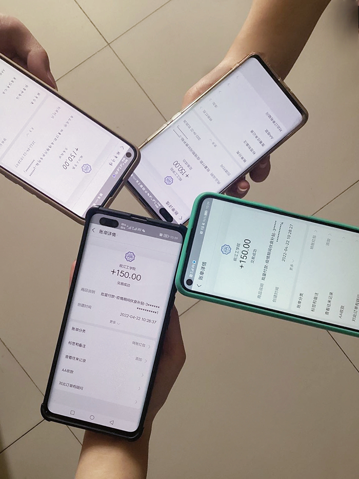 4月22日,18新利怎样刘圆圆同学突然收到支付宝通知,提示有150元伙食补助到账。“看见到账的钱,安抚了我五一不能回家的失落心情,非常感谢学校的关心。”她激动地说。